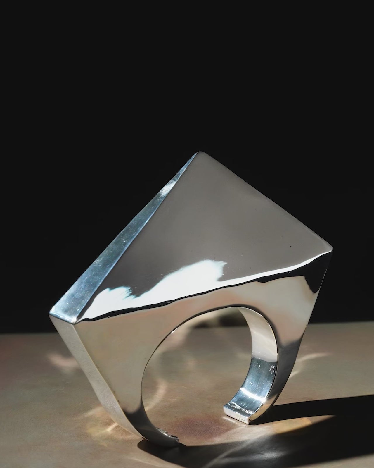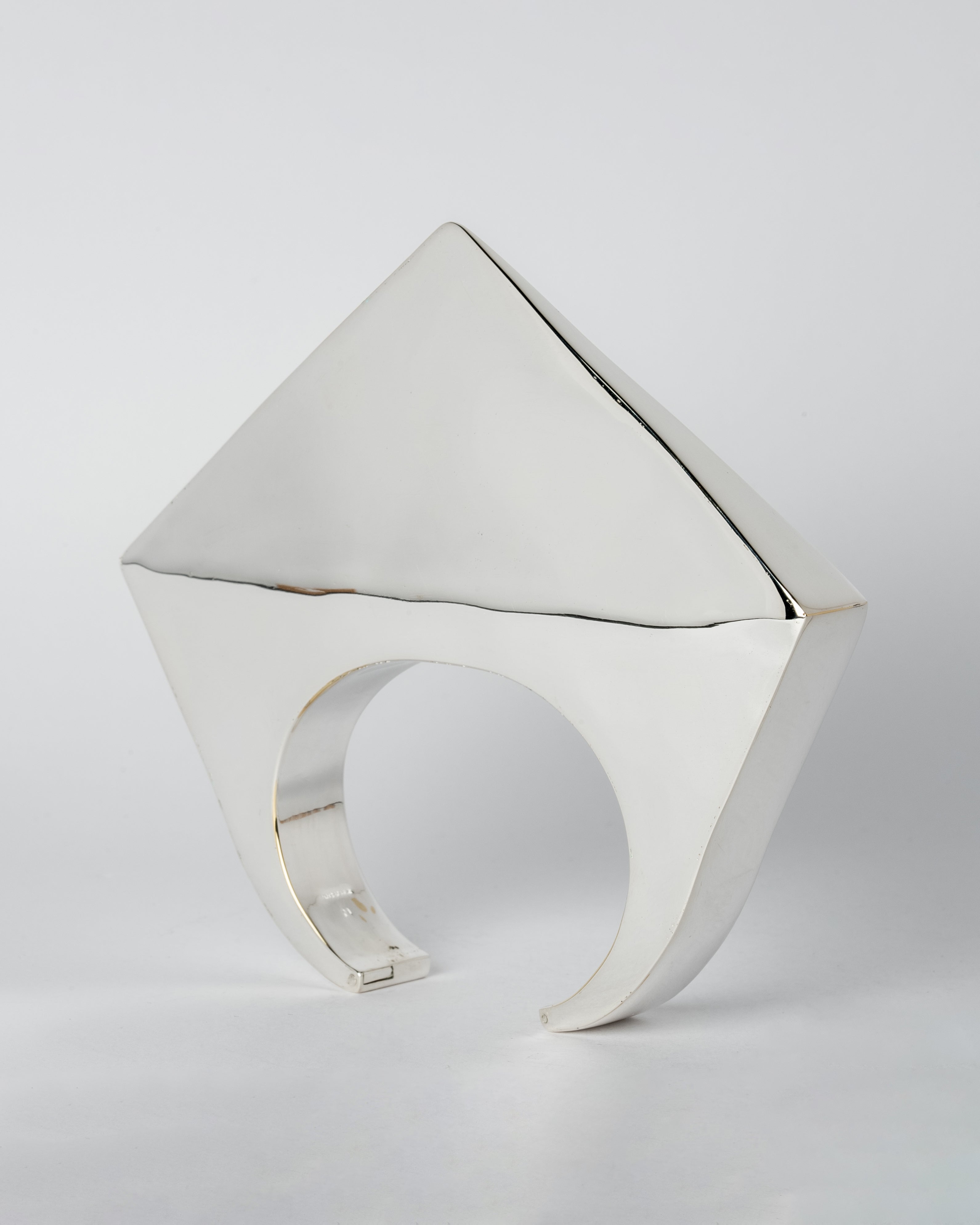 This piece is 100% hand fabricated from metal plate; cut into sections and soldered together to make the hollow three dimensional form. If sterling silver, the sheet metal is made by hand. The silver is melted and rolled out into plate.