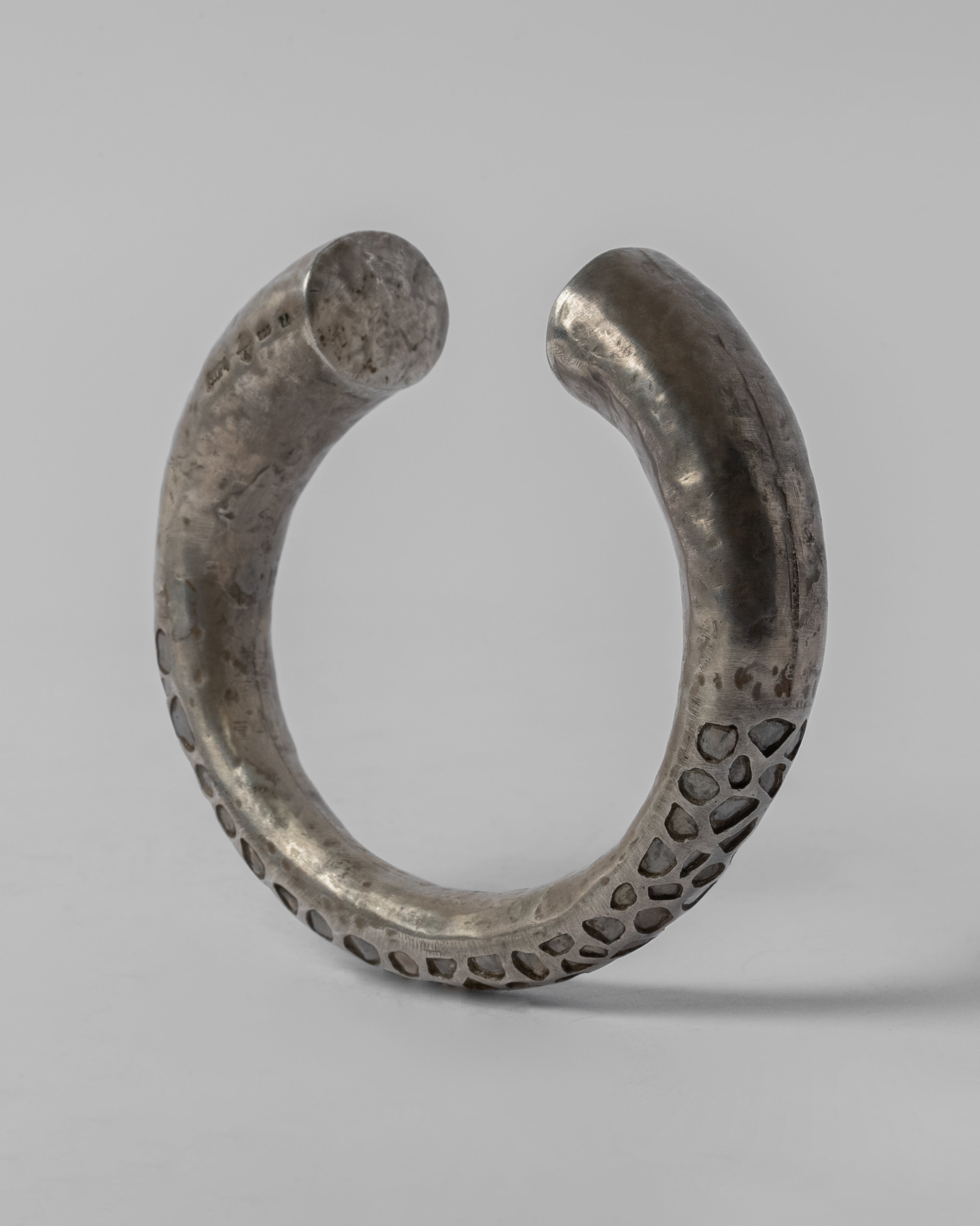 Mega Pavé is extreme stone setting. Breaking traditional norms, diamond slivers are individually carved into the wax master of every item before casting.
