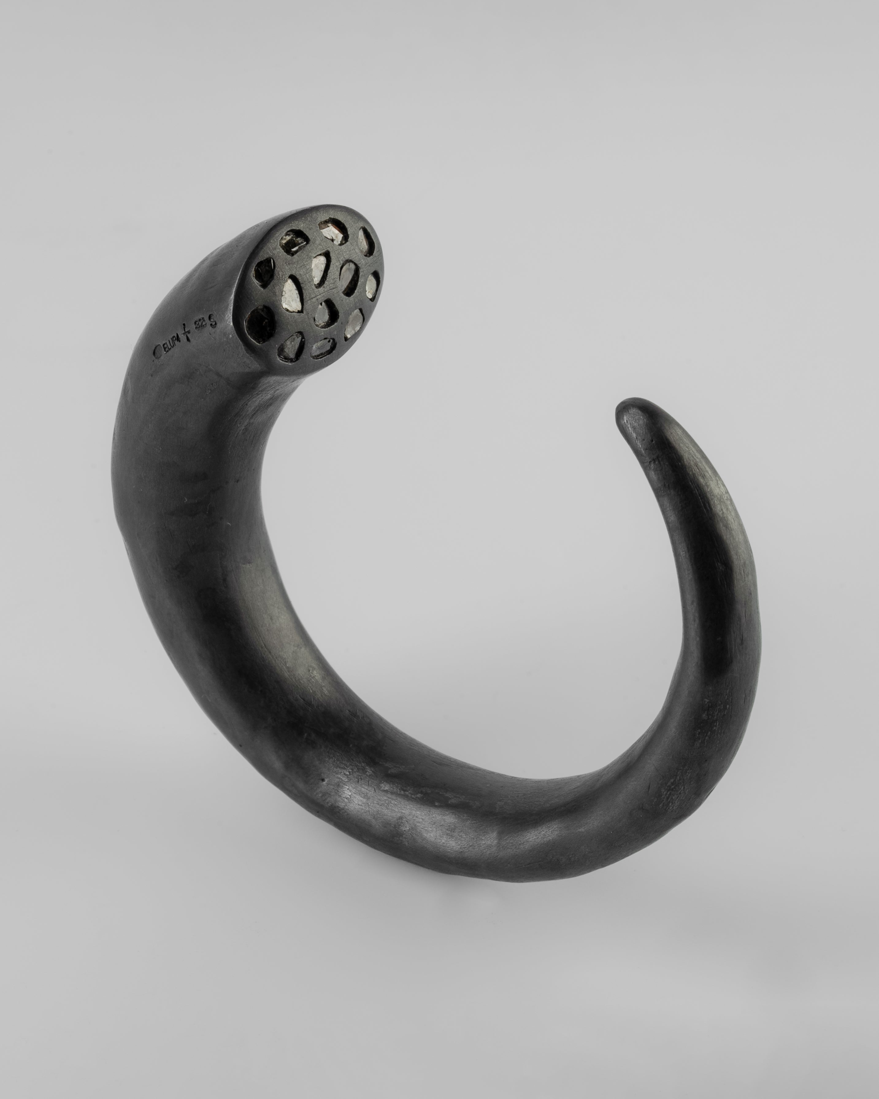 This piece is 100% hand fabricated from metal plate; cut into sections and soldered together to make the hollow three dimensional form. If sterling silver, the sheet metal is made by hand. The silver is melted and rolled out into plate.