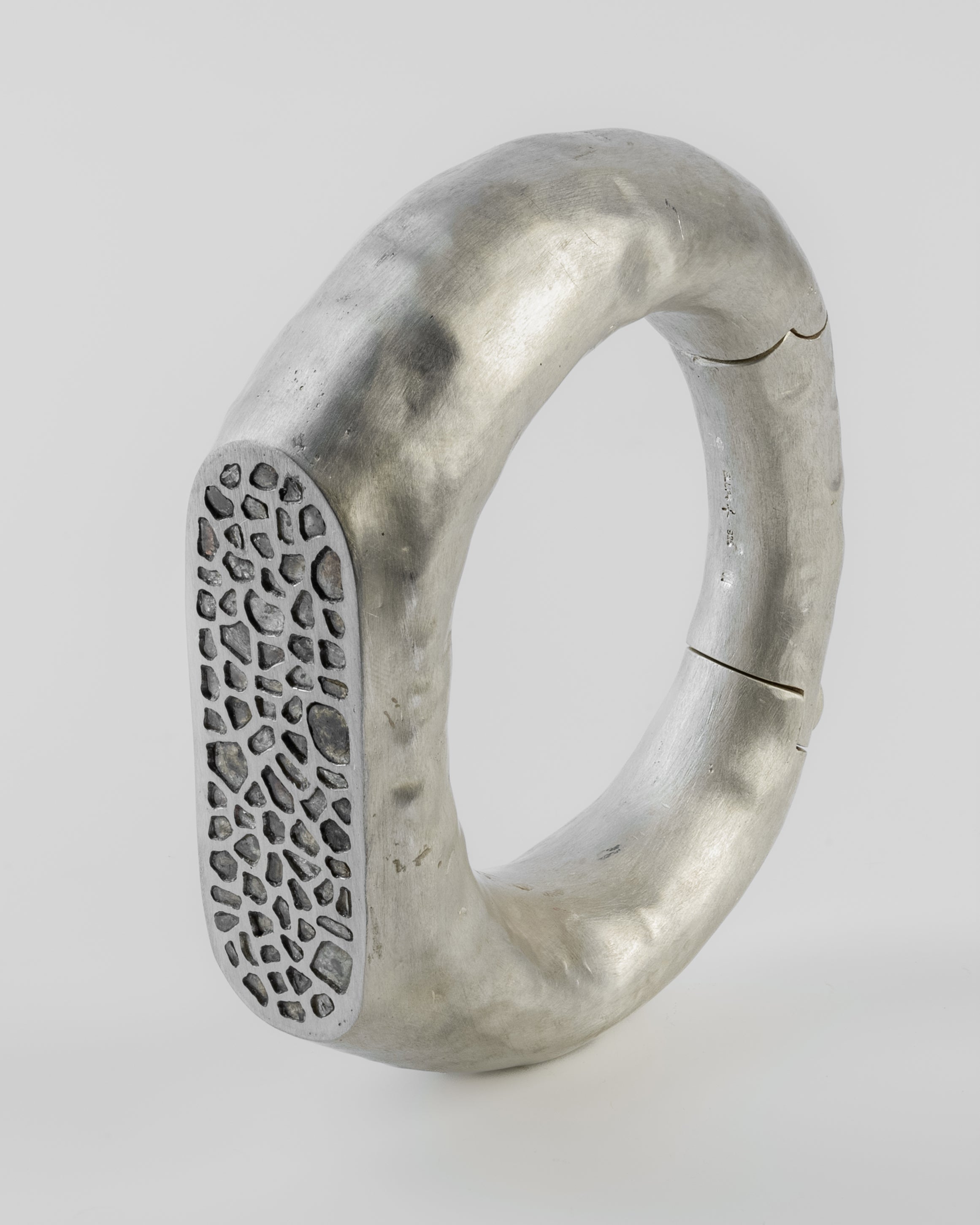This piece is 100% hand fabricated from metal plate; cut into sections and soldered together to make the hollow three dimensional form. If sterling silver, the sheet metal is made by hand. The silver is melted and rolled out into plate.