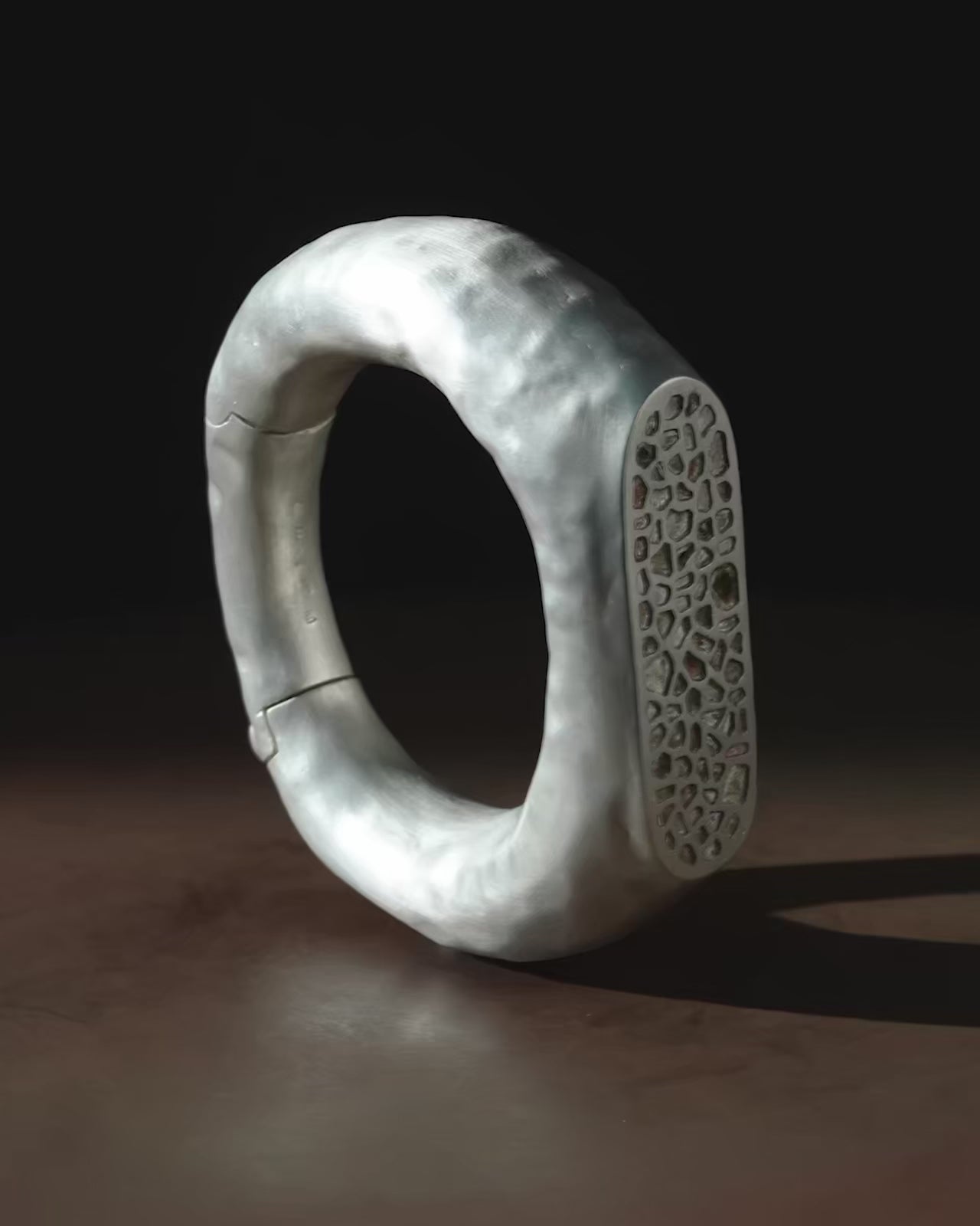 Mega Pavé is extreme stone setting. Breaking traditional norms, diamond slivers are individually carved into the wax master of every item before casting.