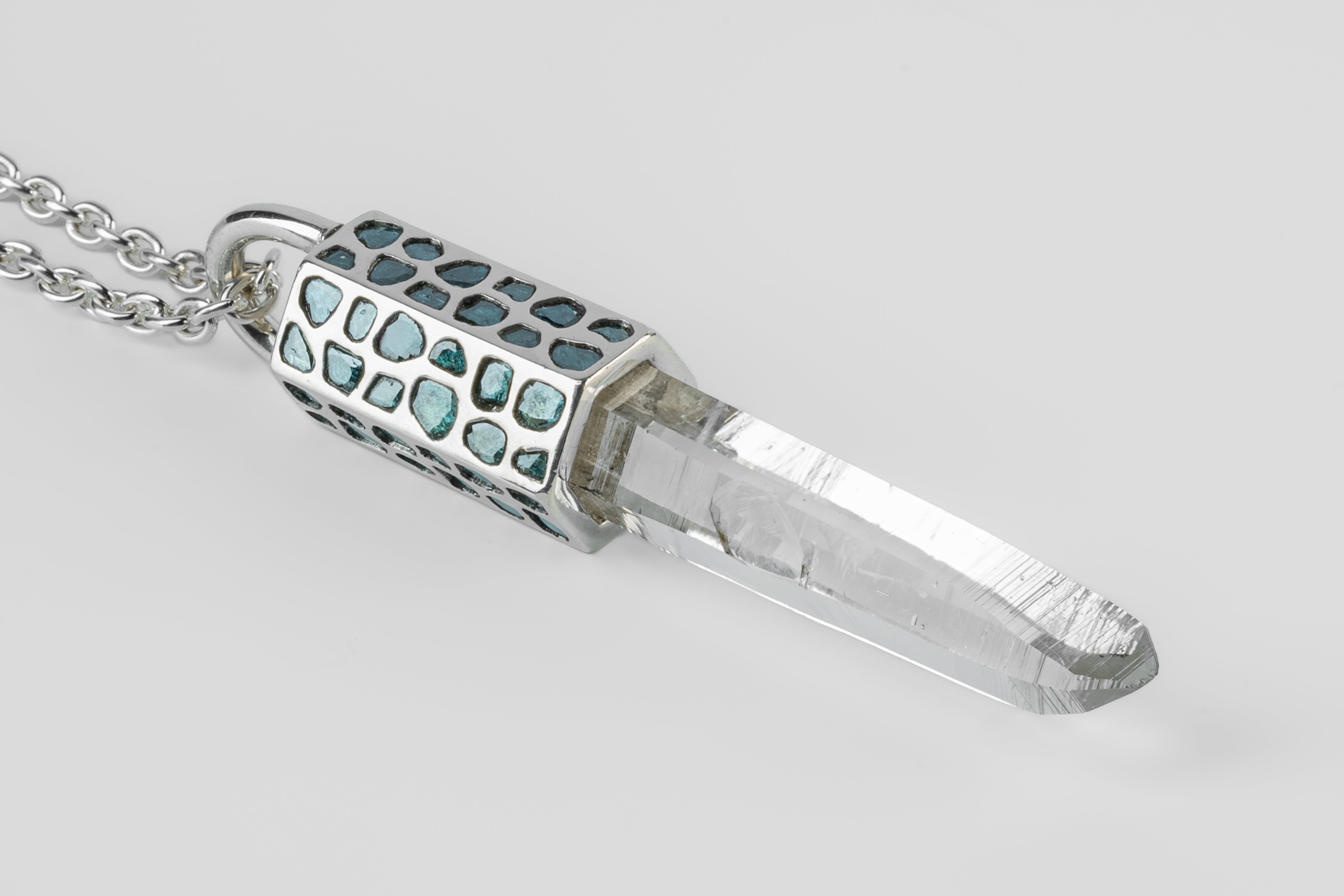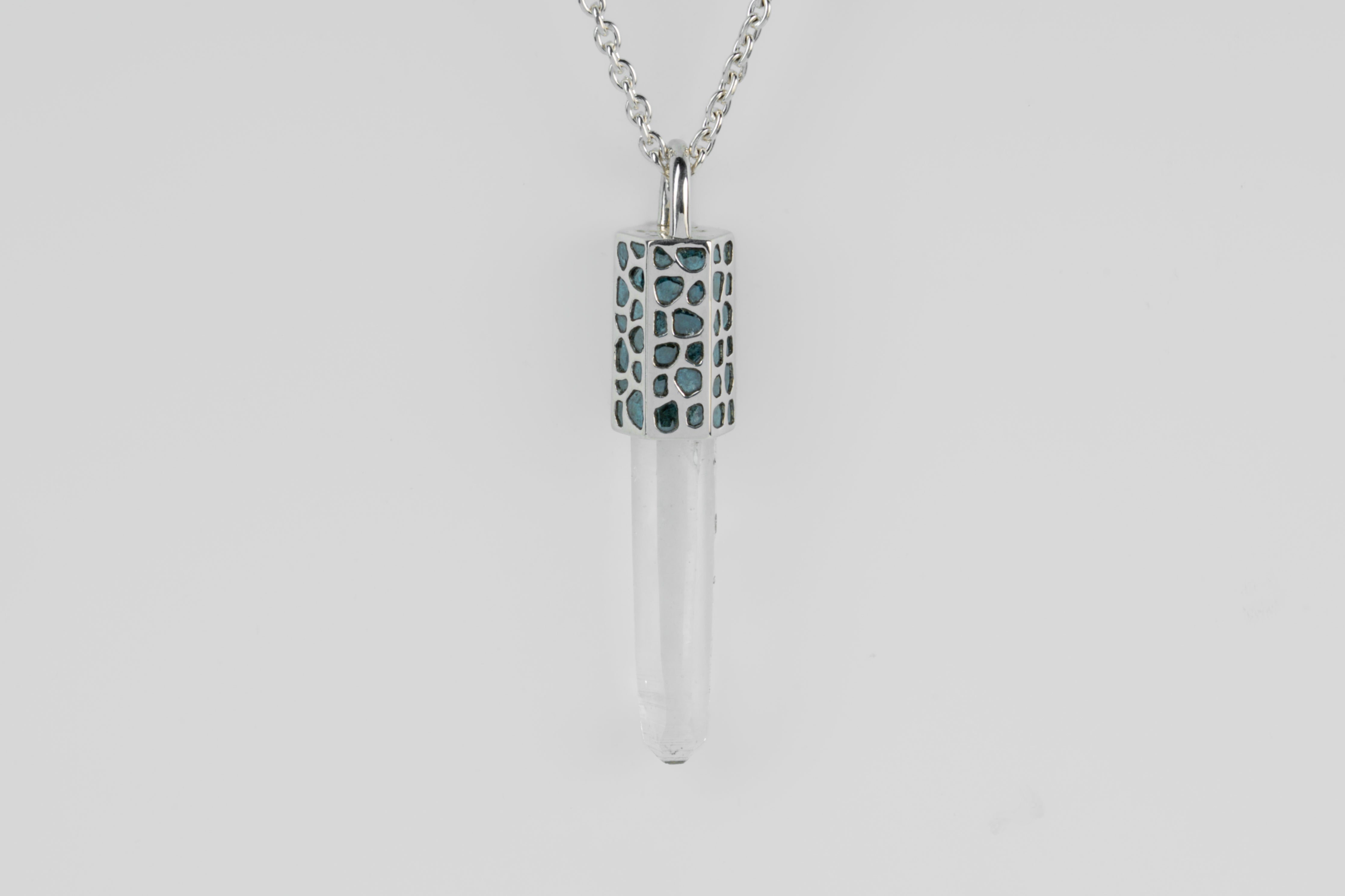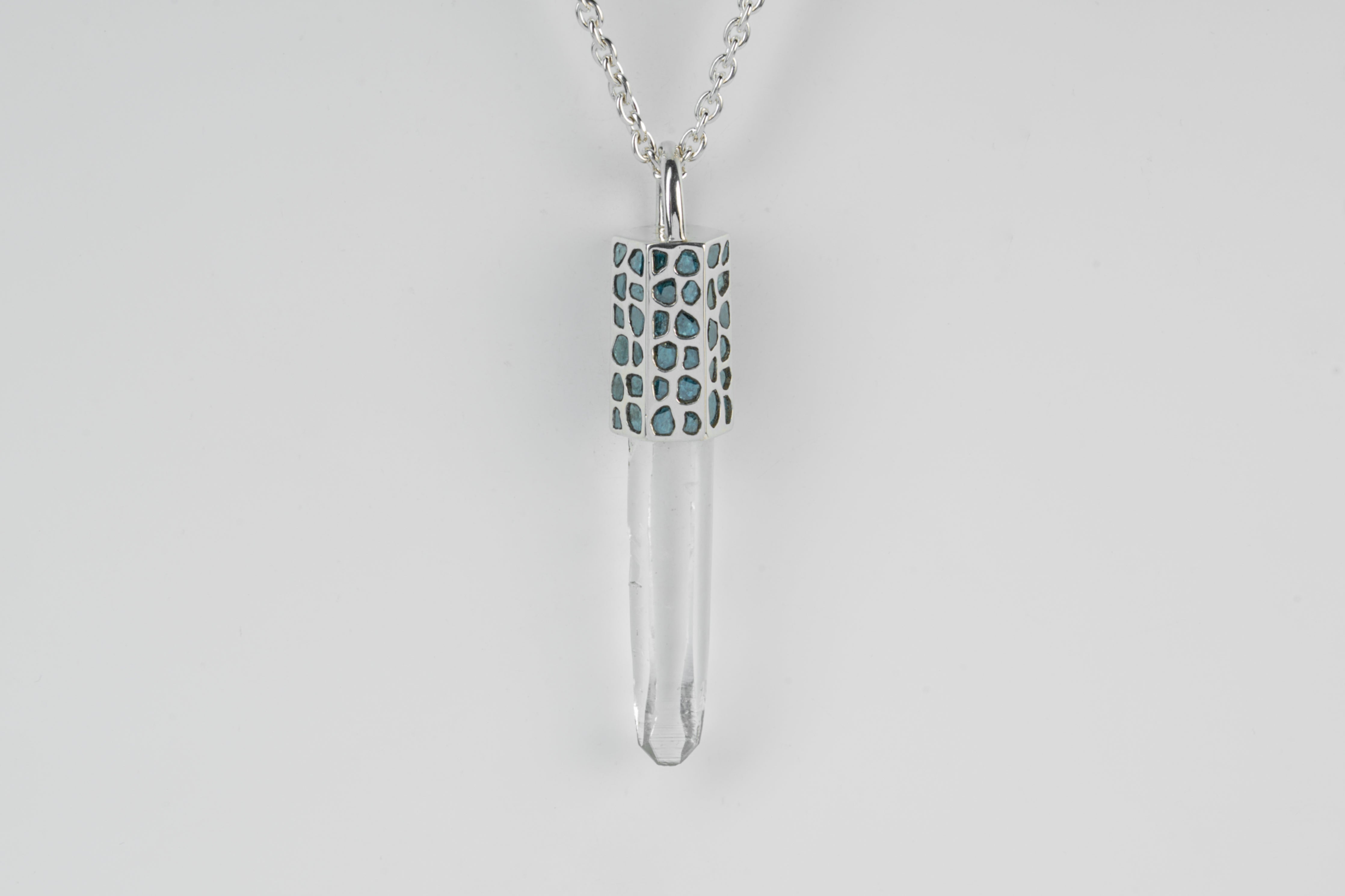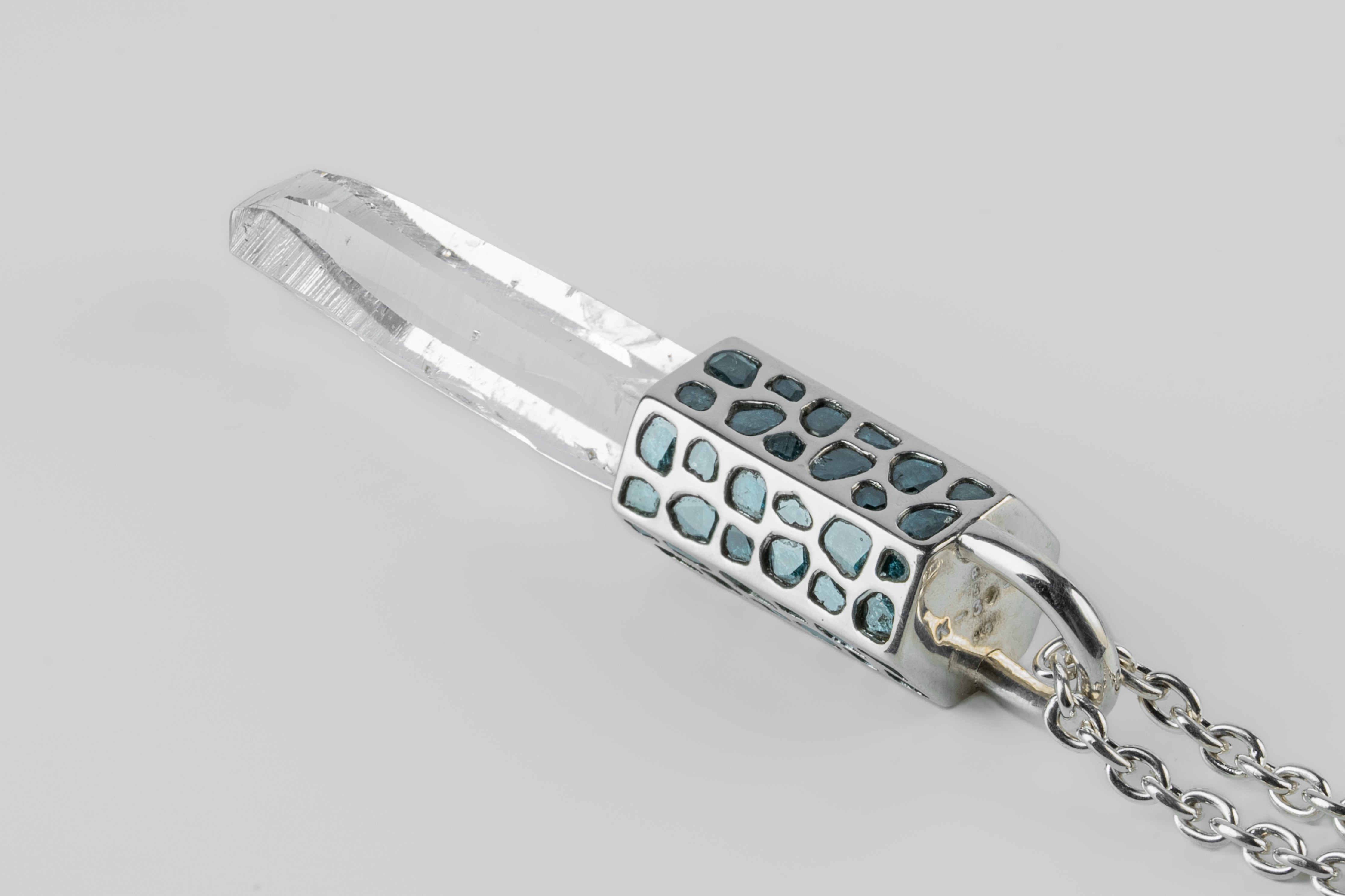 Talisman Necklace (Mega Pavé, Blue Diamond Slabs, Lemurian Quartz, PA+BDIA+LEM)