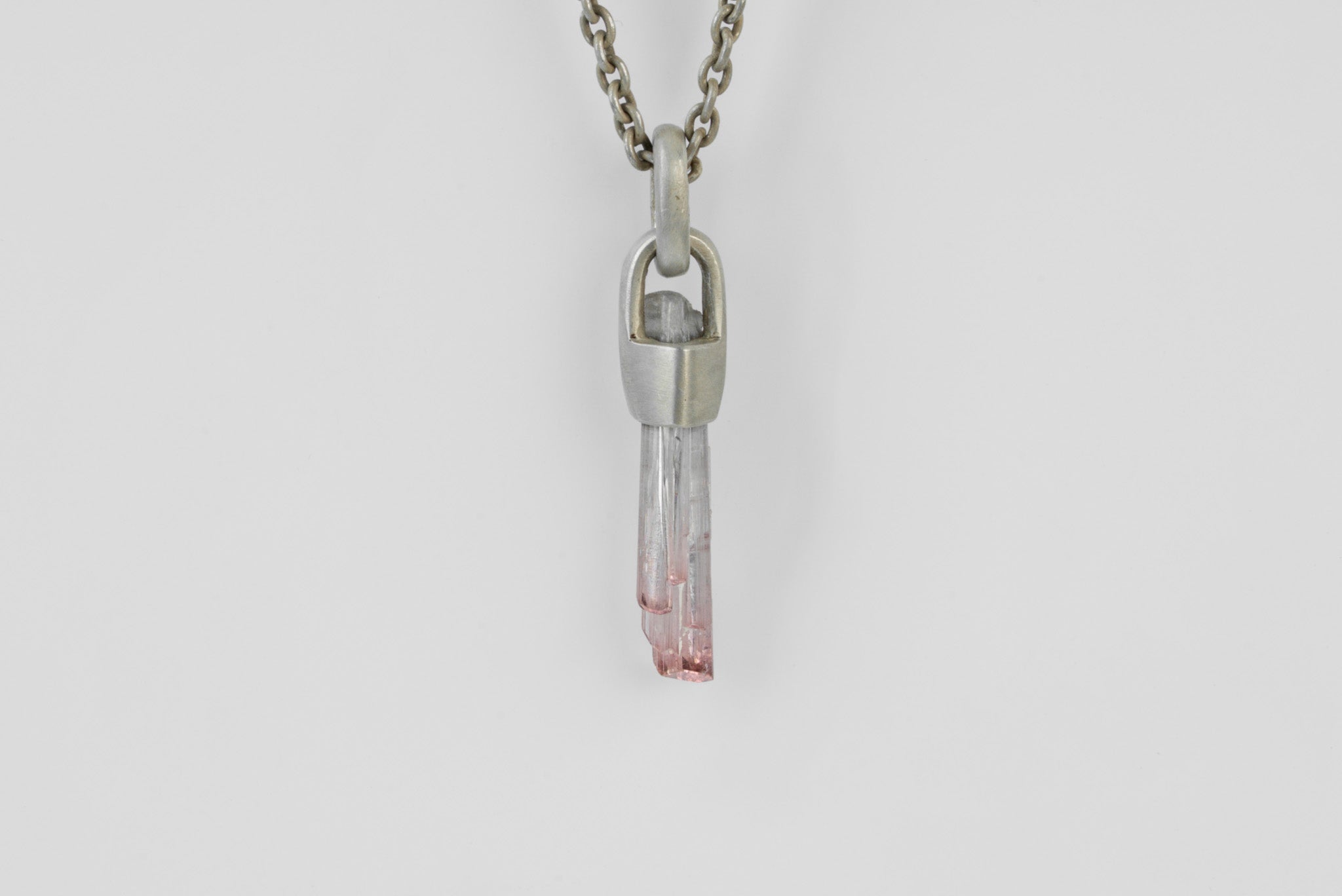 | Colors: | DA: Dirty Sterling. Sterling silver, dipped in acid to create a subdued surface. Results will never be identical, and this nuance / variation should be seen as a characteristic of the uniqueness of the product. RBL: Rubellite. Tourmlaine: Pink-Red |