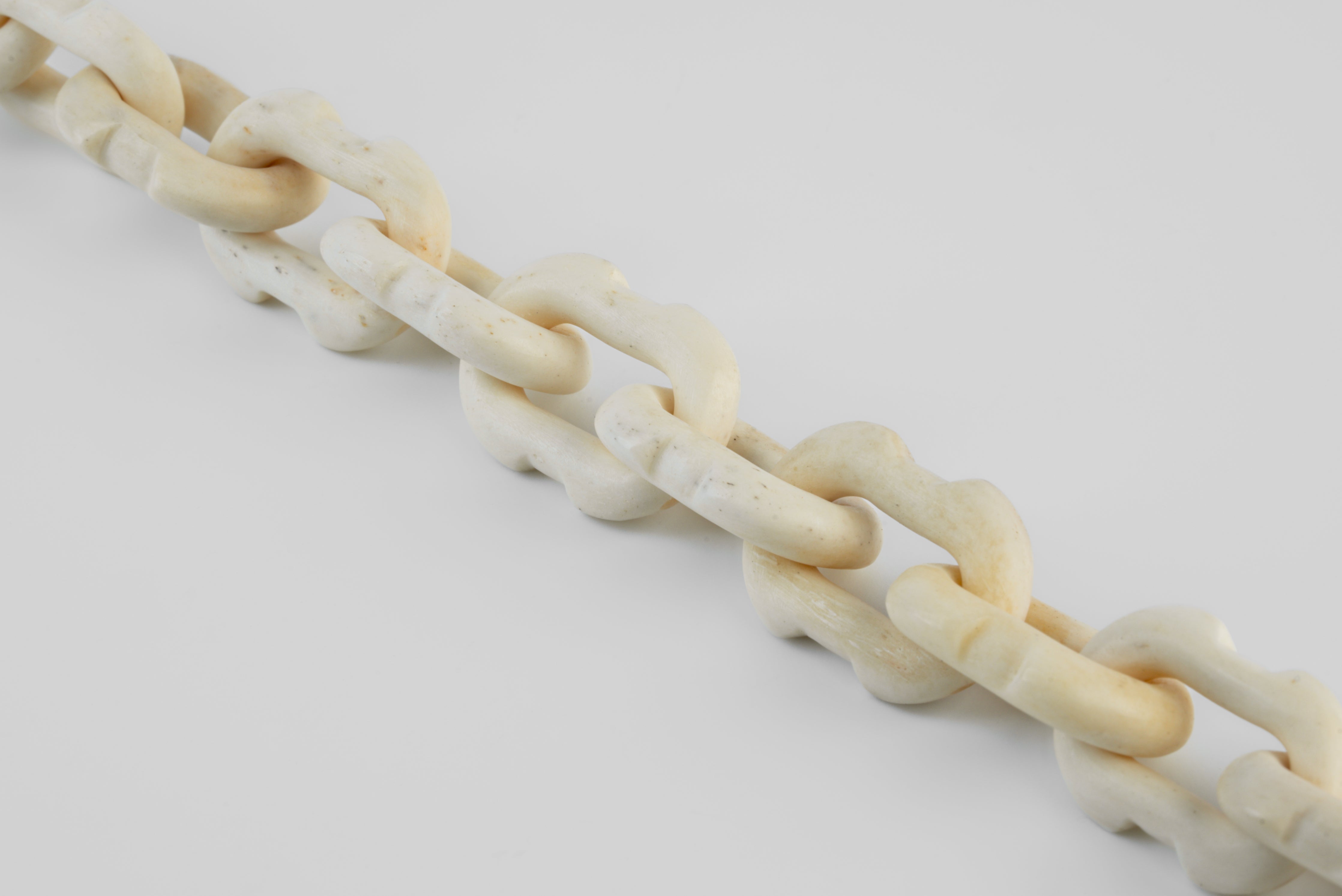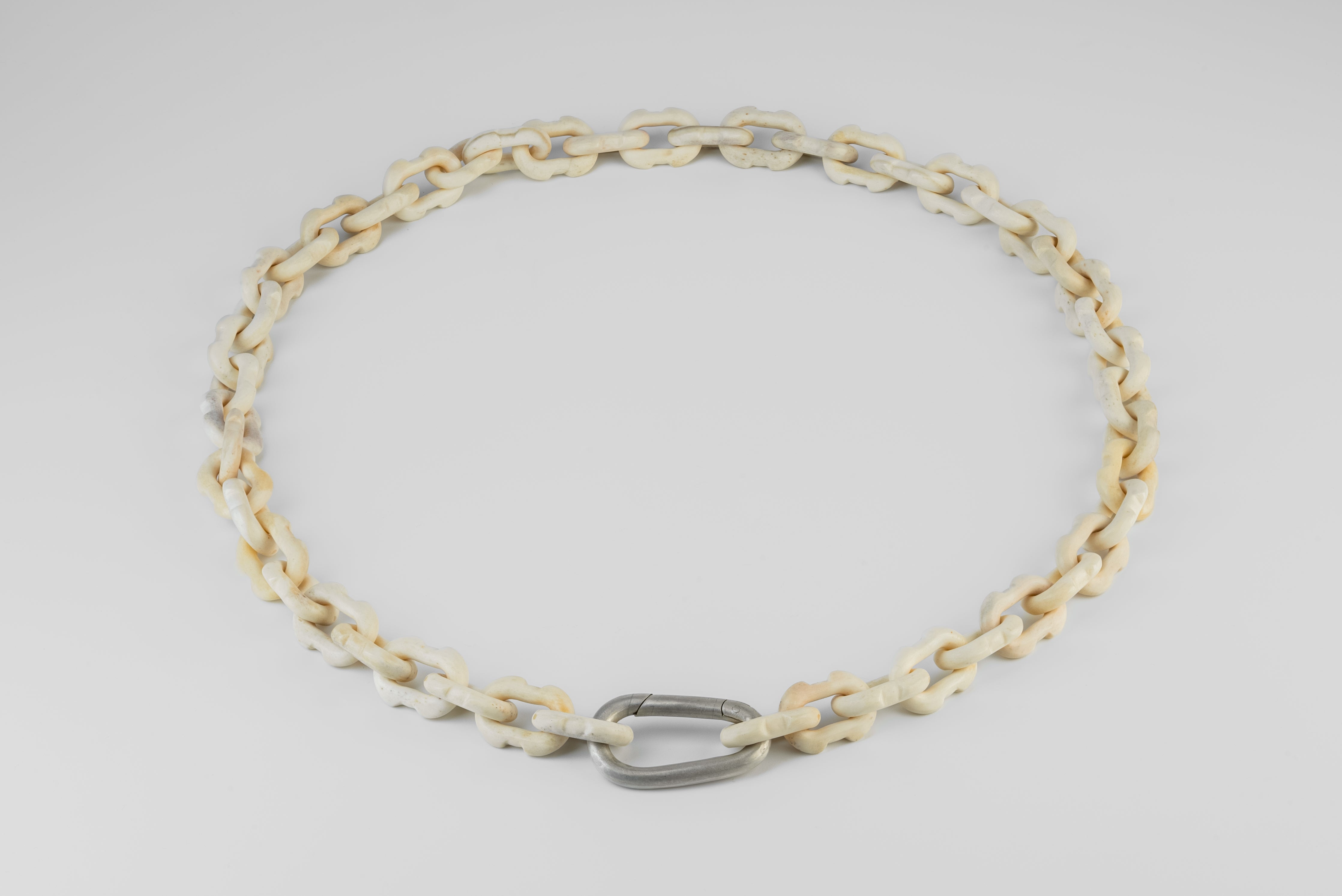 All organic chain is carved by hand. In the case of the chains made of wood, they are absolutely seamless; carved from a single long slab of wood (see link). Chains made from bone, horn and coral are modeled and constructed into chain links.