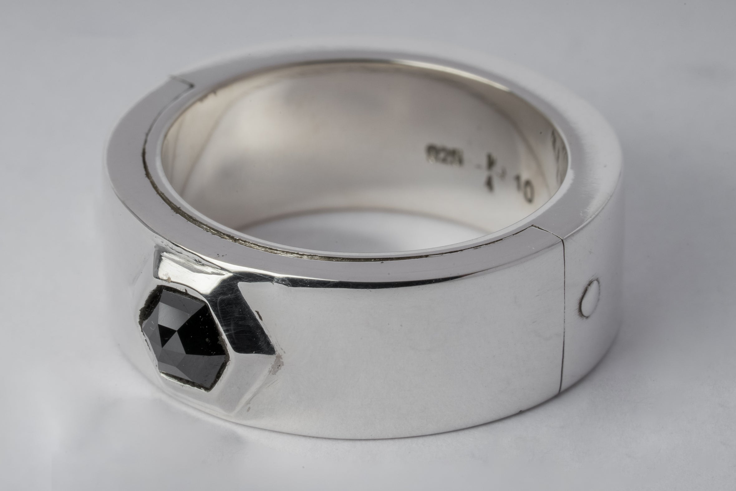 Colors: PA: Polished sterling silver. BLKDIA: Black Hex Diamond. Deep black diamonds, ethically sourced.