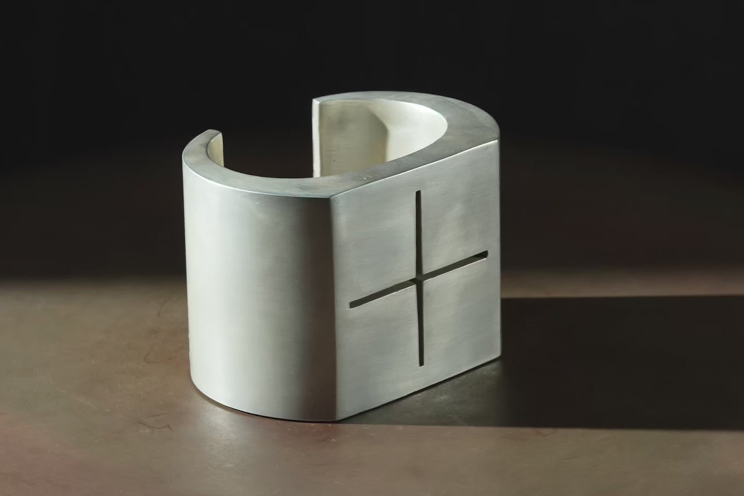 | Colors: | AS: Acid Silver. Brass substrate is electroplated with silver and then dipped into acid to create the subtly destroyed surface. The concentration of the plating solution, air temperature and time in the acid bath all play integral roles in the final result and exist in a delicate balance. No two items are the same and these nuances / variations should be seen as a characteristic of the product. |