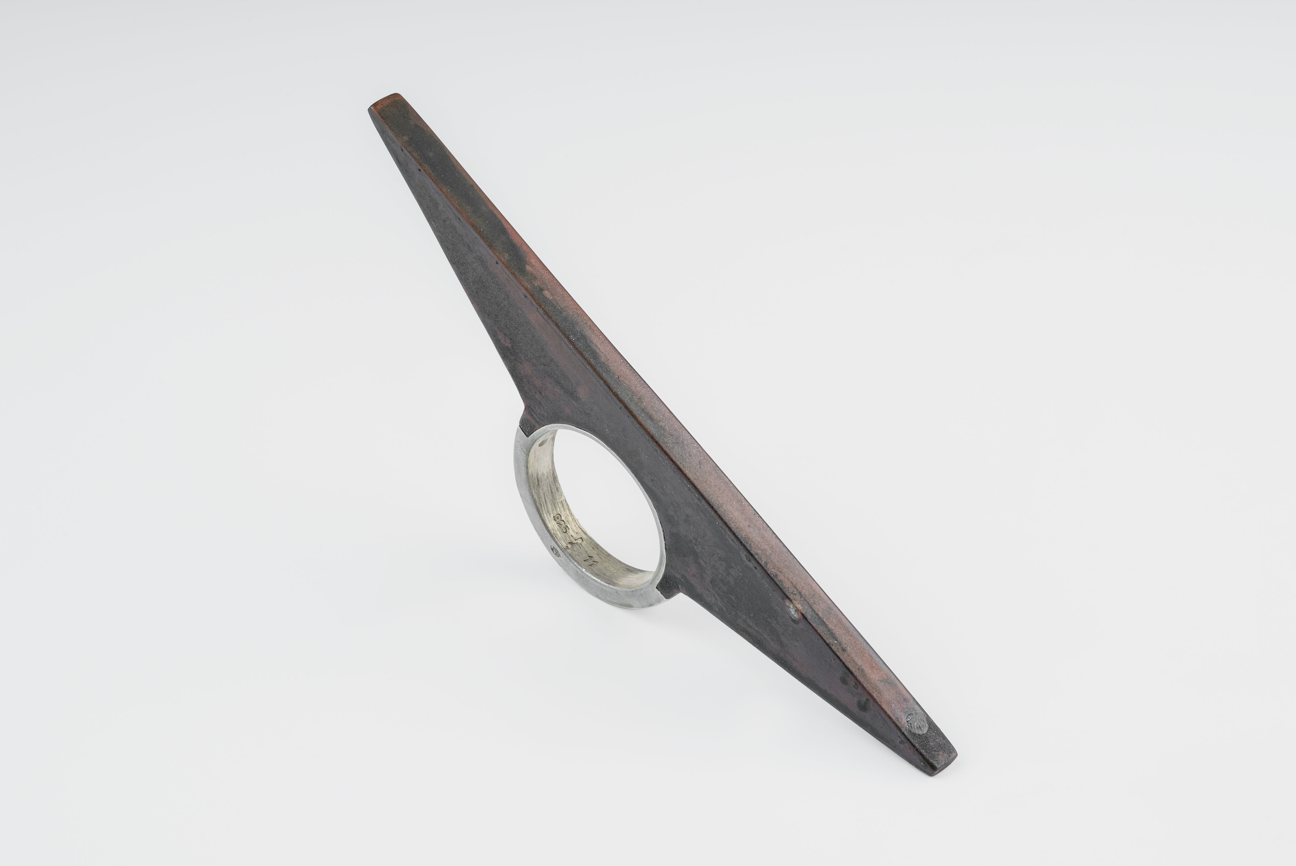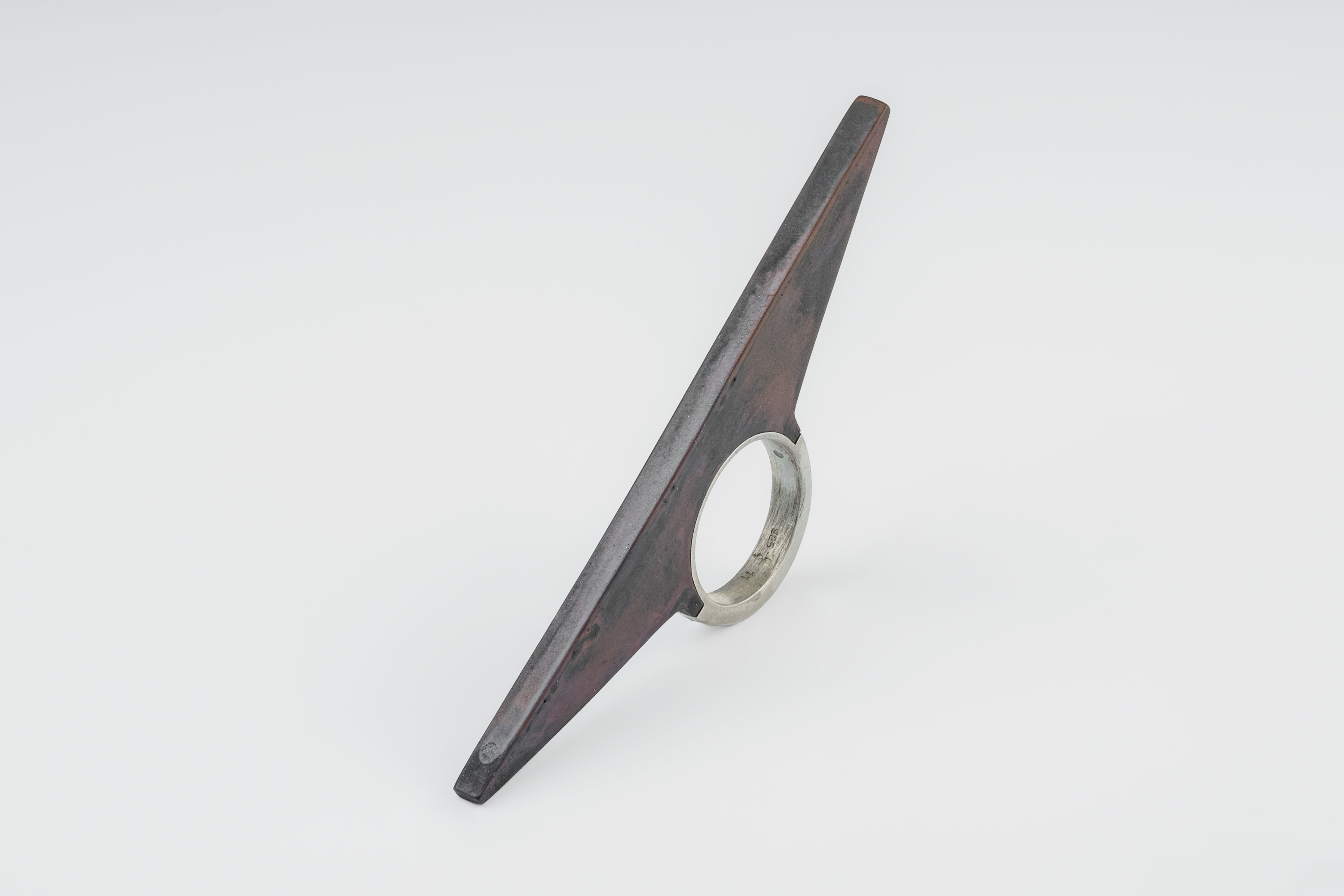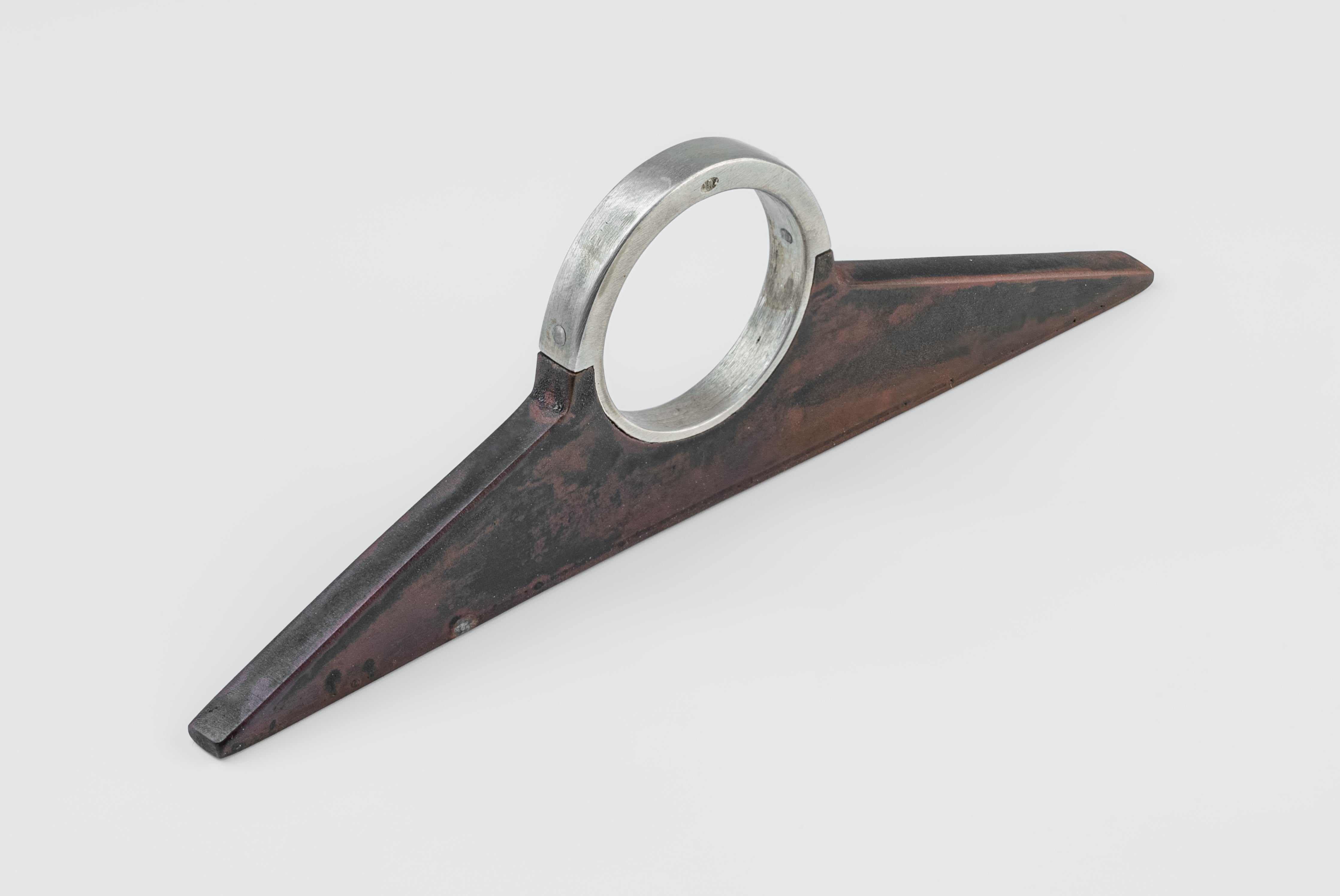 | Colors: | DA: Dirty Sterling. Sterling silver, dipped in acid to create a subdued surface. Results will never be identical, and this nuance / variation should be seen as a characteristic of the uniqueness of the product. DR: Dirty Brass. This color is accomplished by burning the metal to the point that it releases its impurities and self colorizes. This patina occurs from within, no chemical was added to the surface. |
