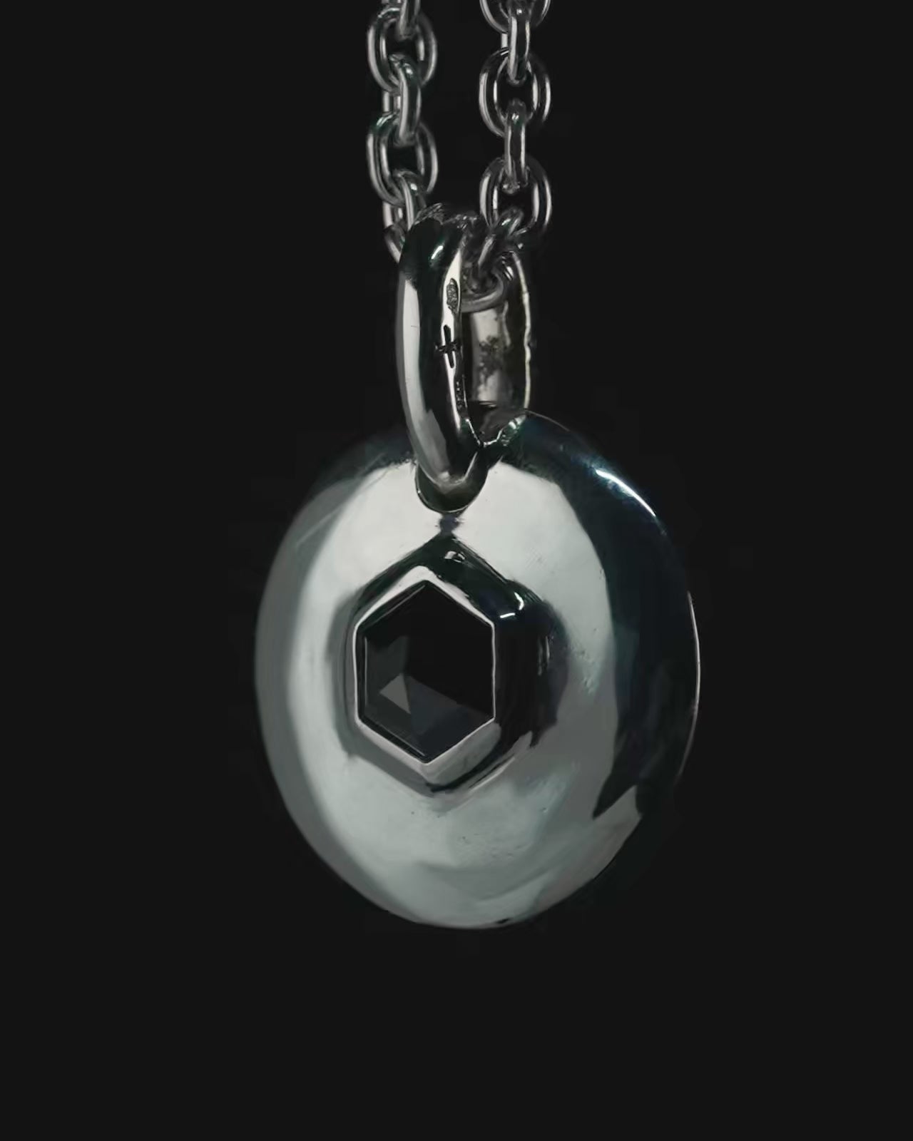 Disk Necklace (25mm, Fancy Setting, Black Hex Diamond, 1.5 CT, 50cm, PA+BLKDIA)