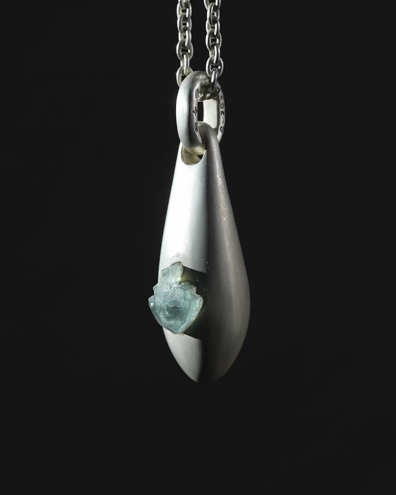 | Colors: | DA: Dirty Sterling. Sterling silver, dipped in acid to create a subdued surface. Results will never be identical, and this nuance / variation should be seen as a characteristic of the uniqueness of the product. IND: Indicolite. Tourmaline: Blue |