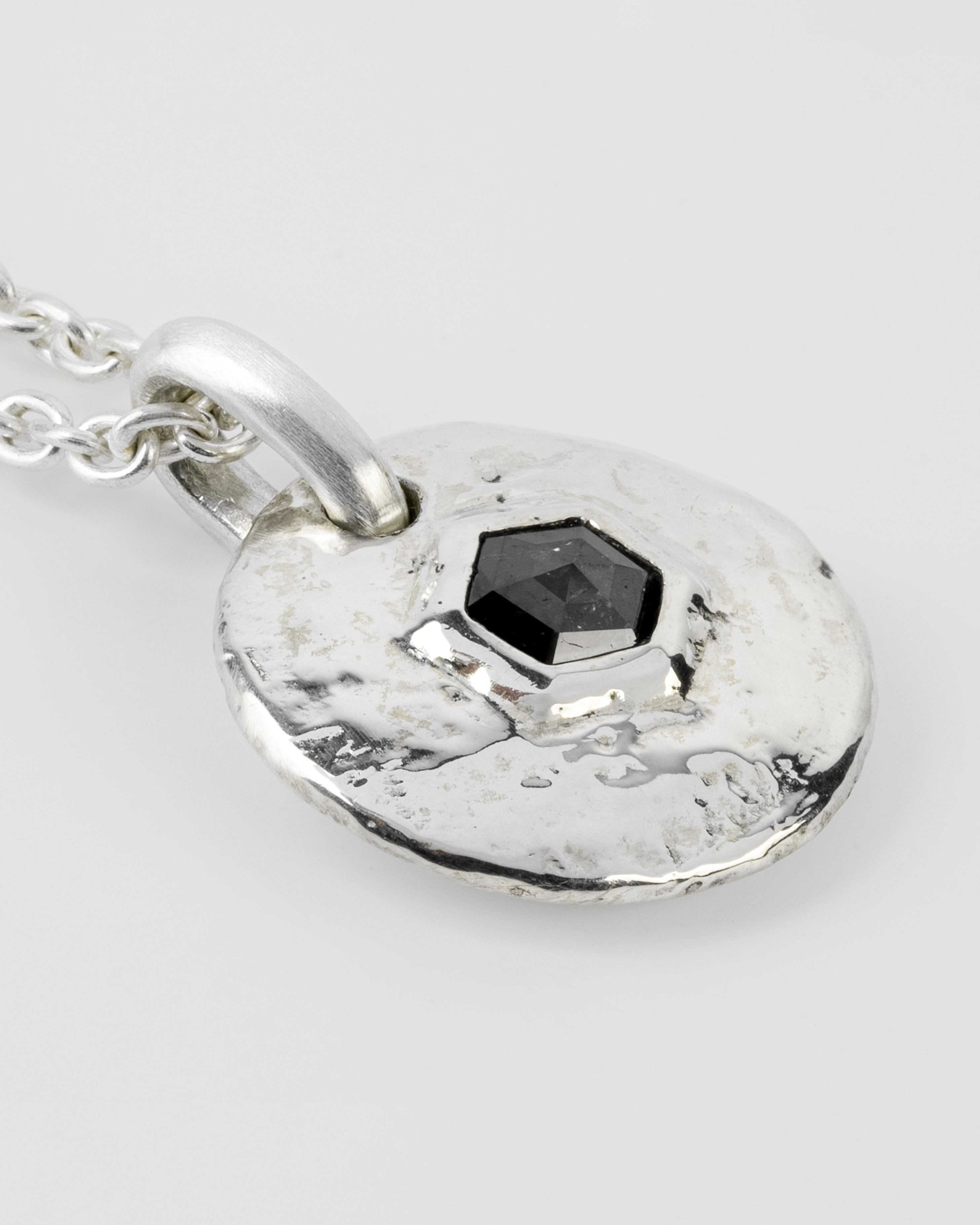 Disk Necklace (Fuse, 25mm, Fancy Setting, Black Hex Diamond, 1.5 CT, 50cm, MA10KW+BLKDIA)