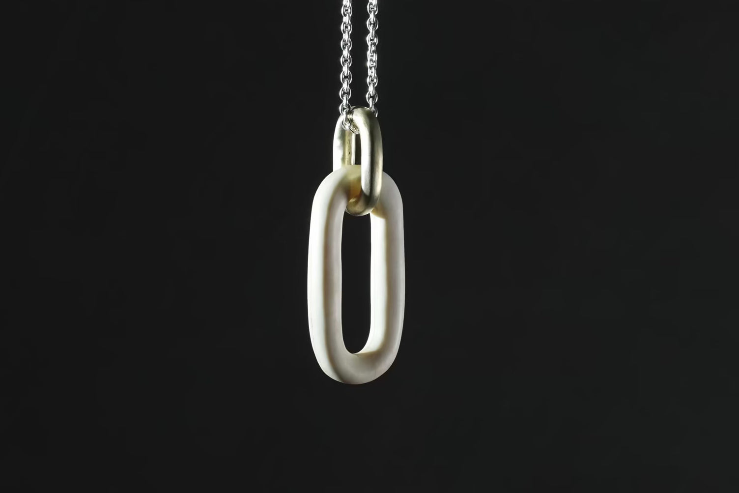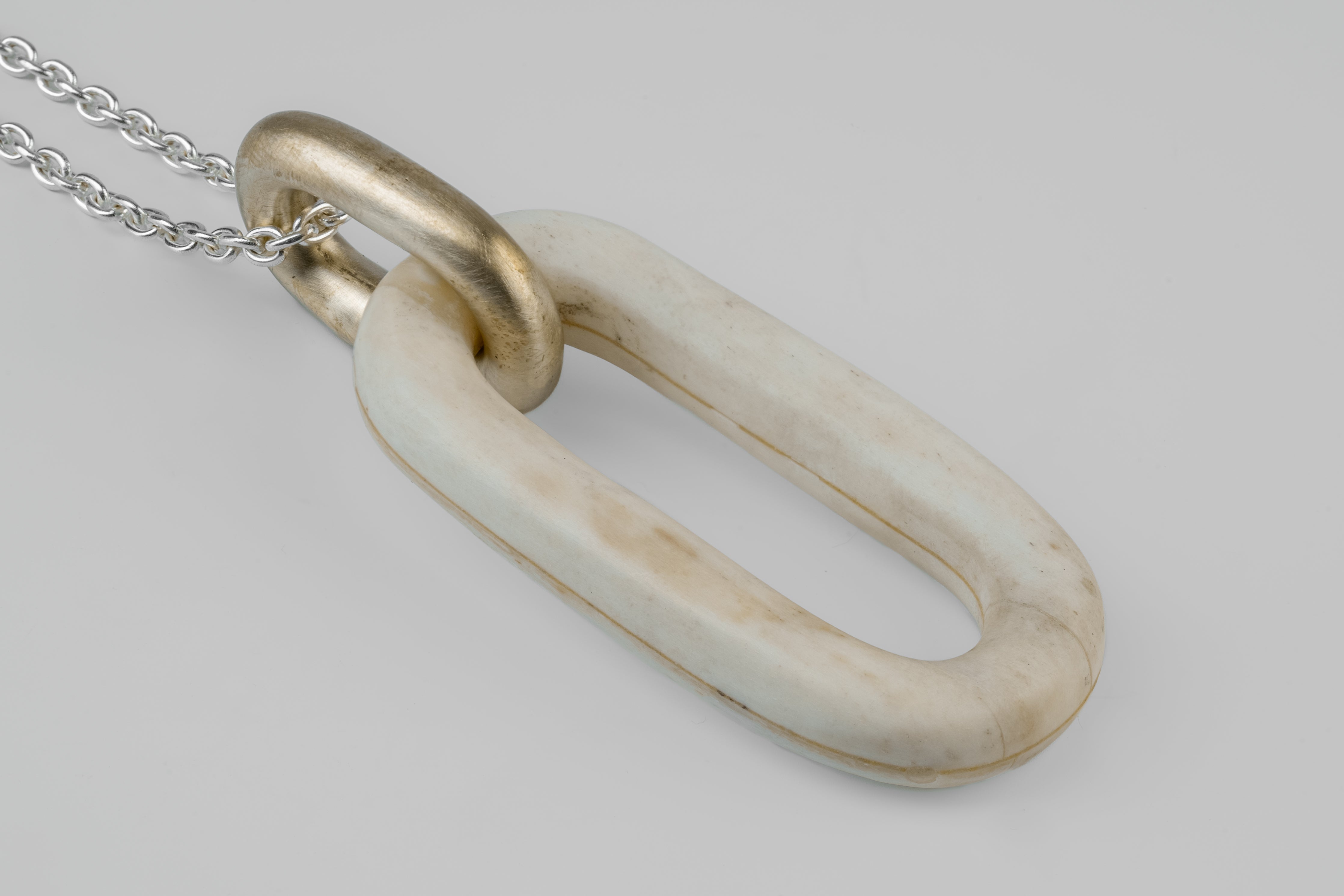 All organic chain is carved by hand. In the case of the chains made of wood, they are absolutely seamless; carved from a single long slab of wood (see link). Chains made from bone, horn and coral are modeled and constructed into chain links.