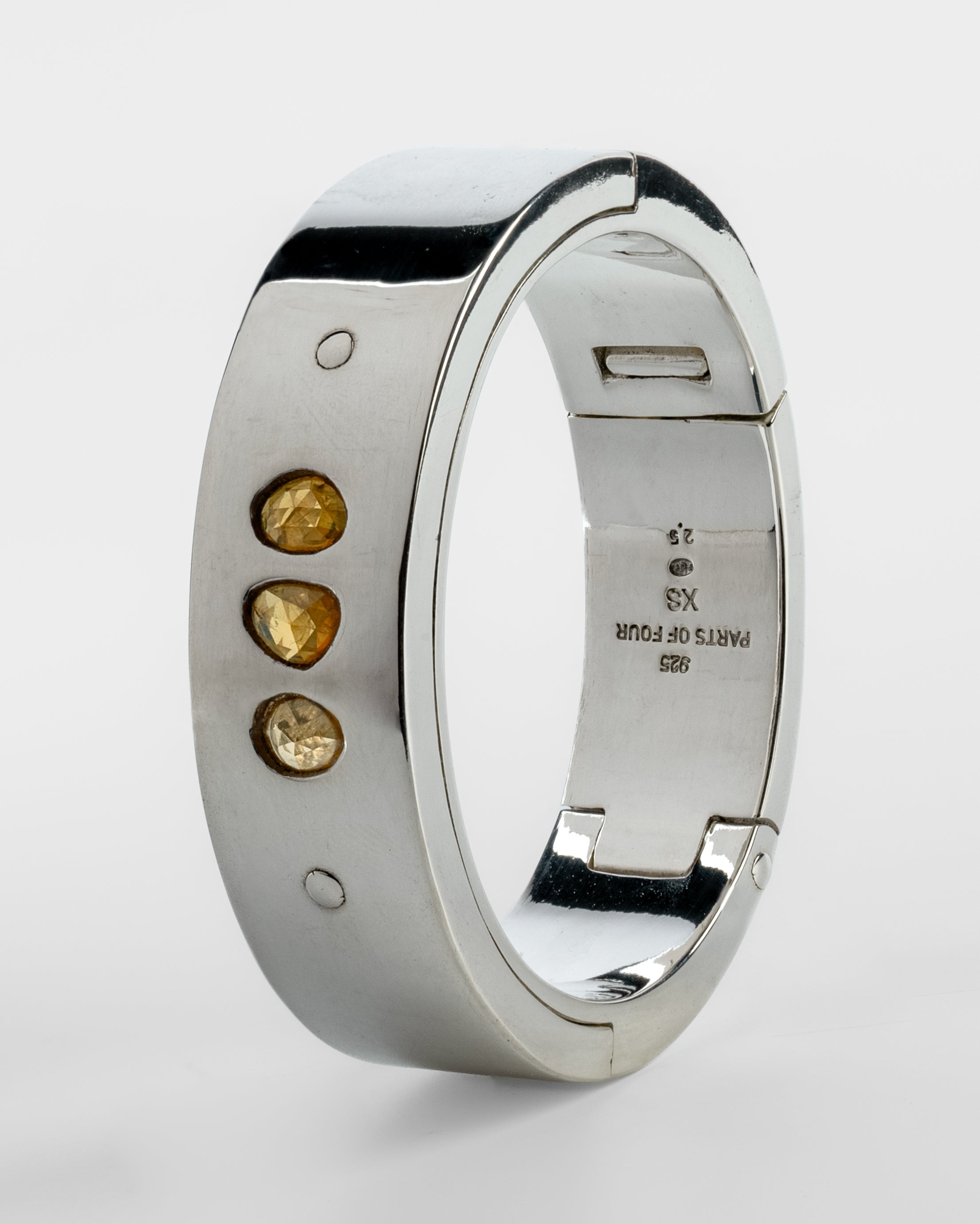 | Colors: | PA: Polished sterling silver. YSAF: Yellow Sapphire Slab (Faceted). OSAF: Orange Sapphire Slab (Faceted). |