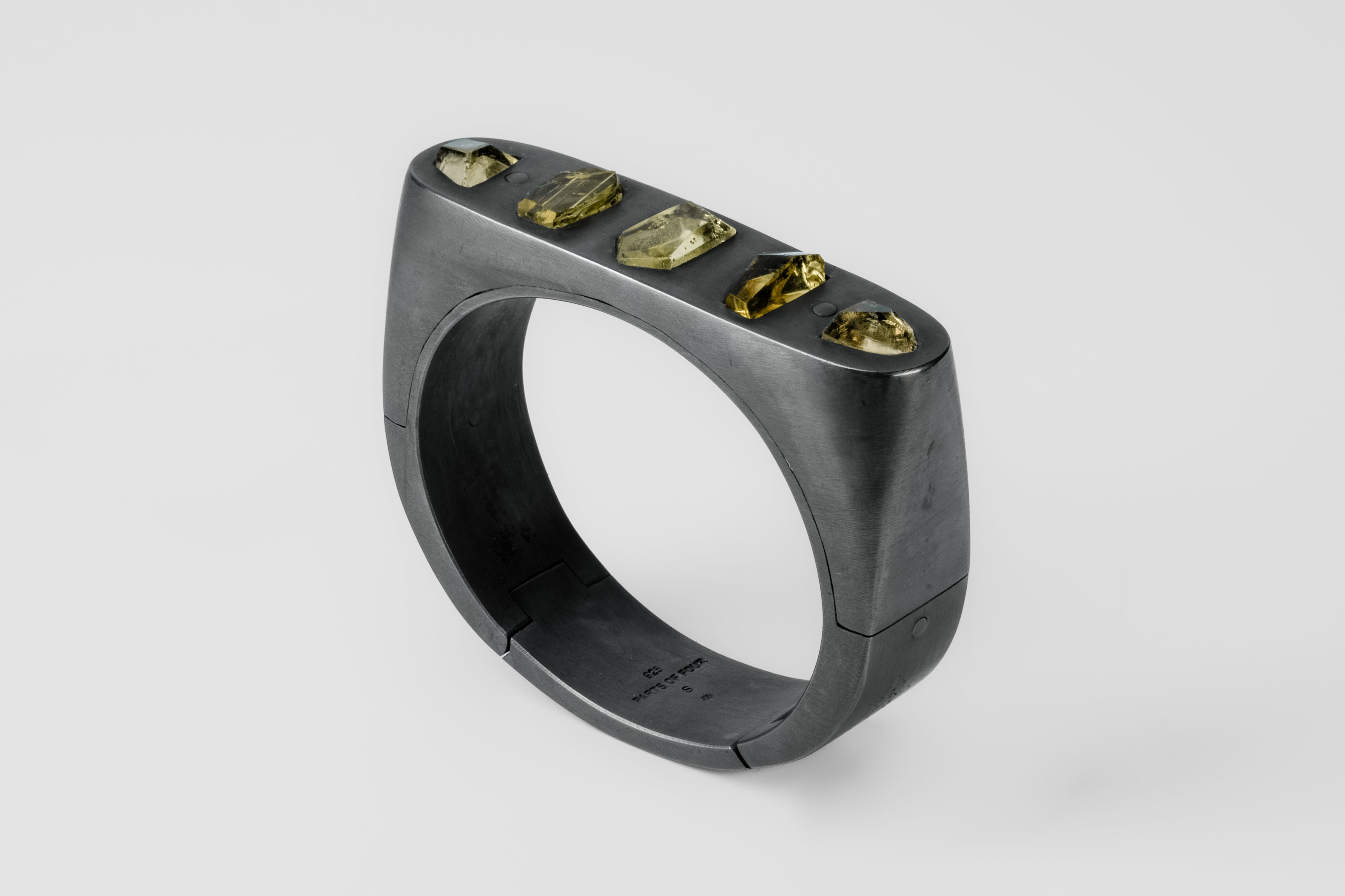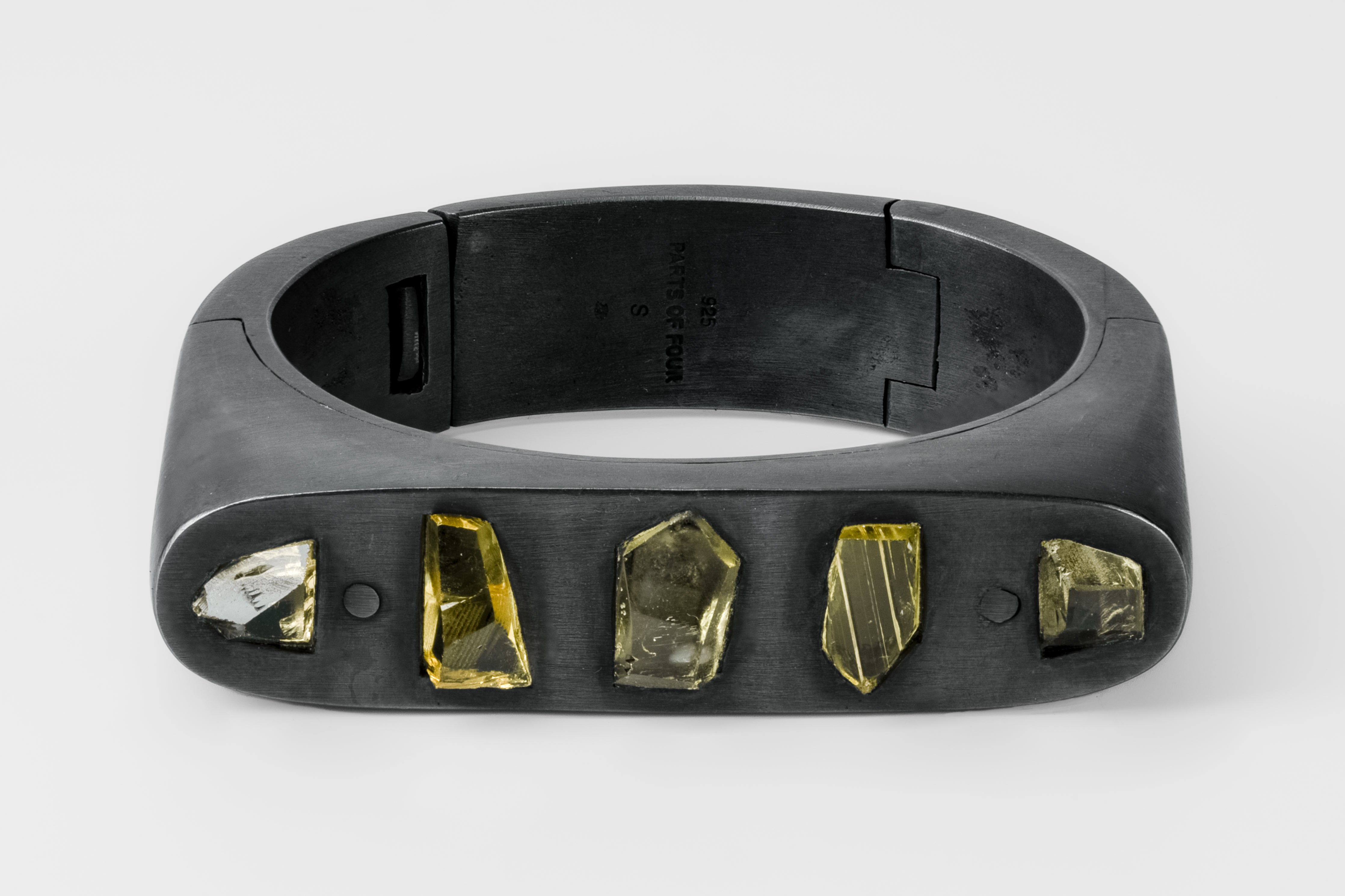 | Colors: | KA: Black Sterling. Black Sterling is a surface oxidation of sterling silver. This finish may fade over time, which can be considered an enhancement. Please note that Black Sterling tends to appear darker in photograph than in person. The finish can be re-blackened easily with Liver of Sulfur, available at most jewelry suppliers. GBER: Golden Beryl. |