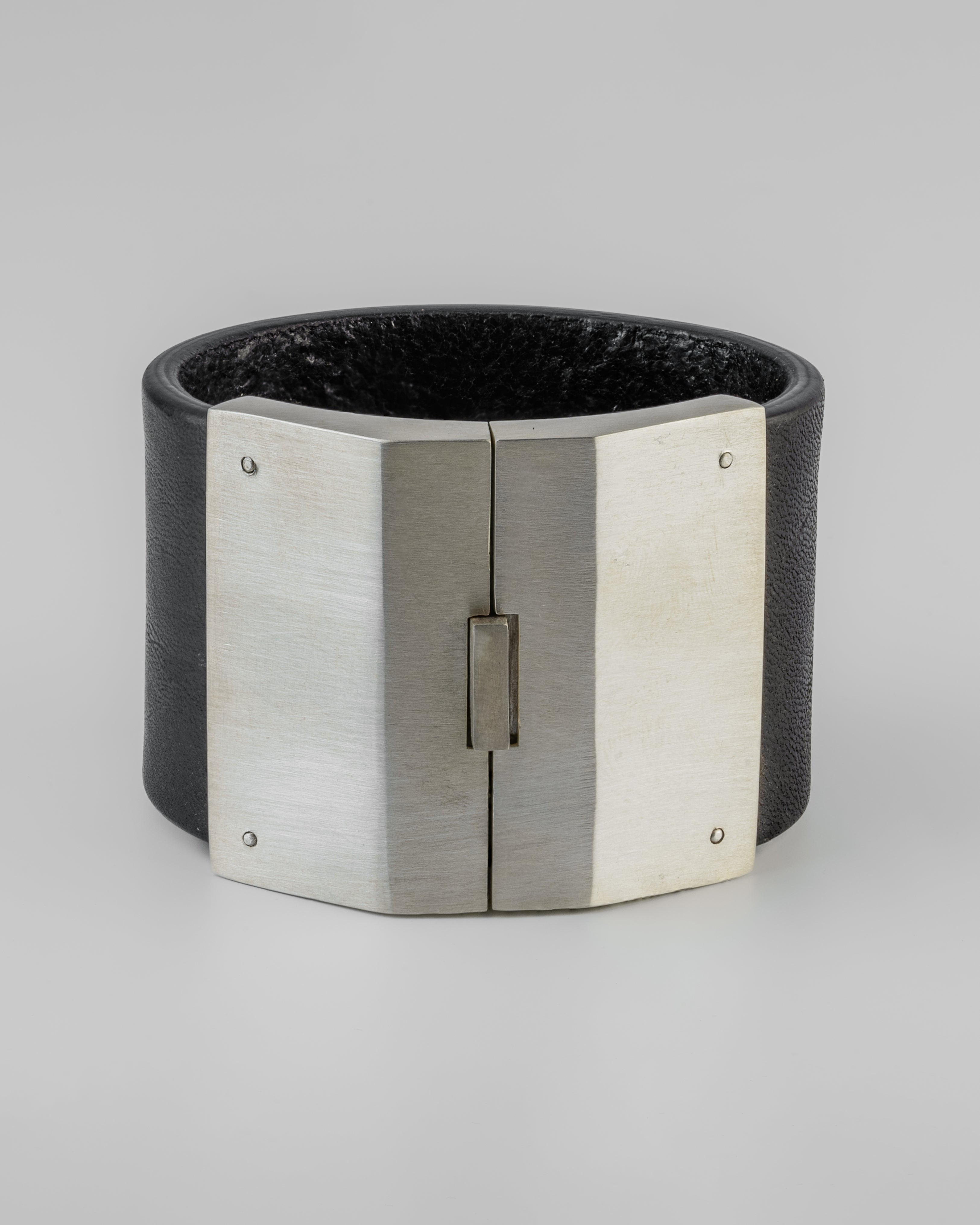 | Colors: | BLK: Black Buffalo leather. MA: Matte Sterling Silver. Sanded at 320 grit |