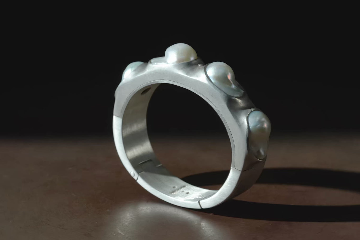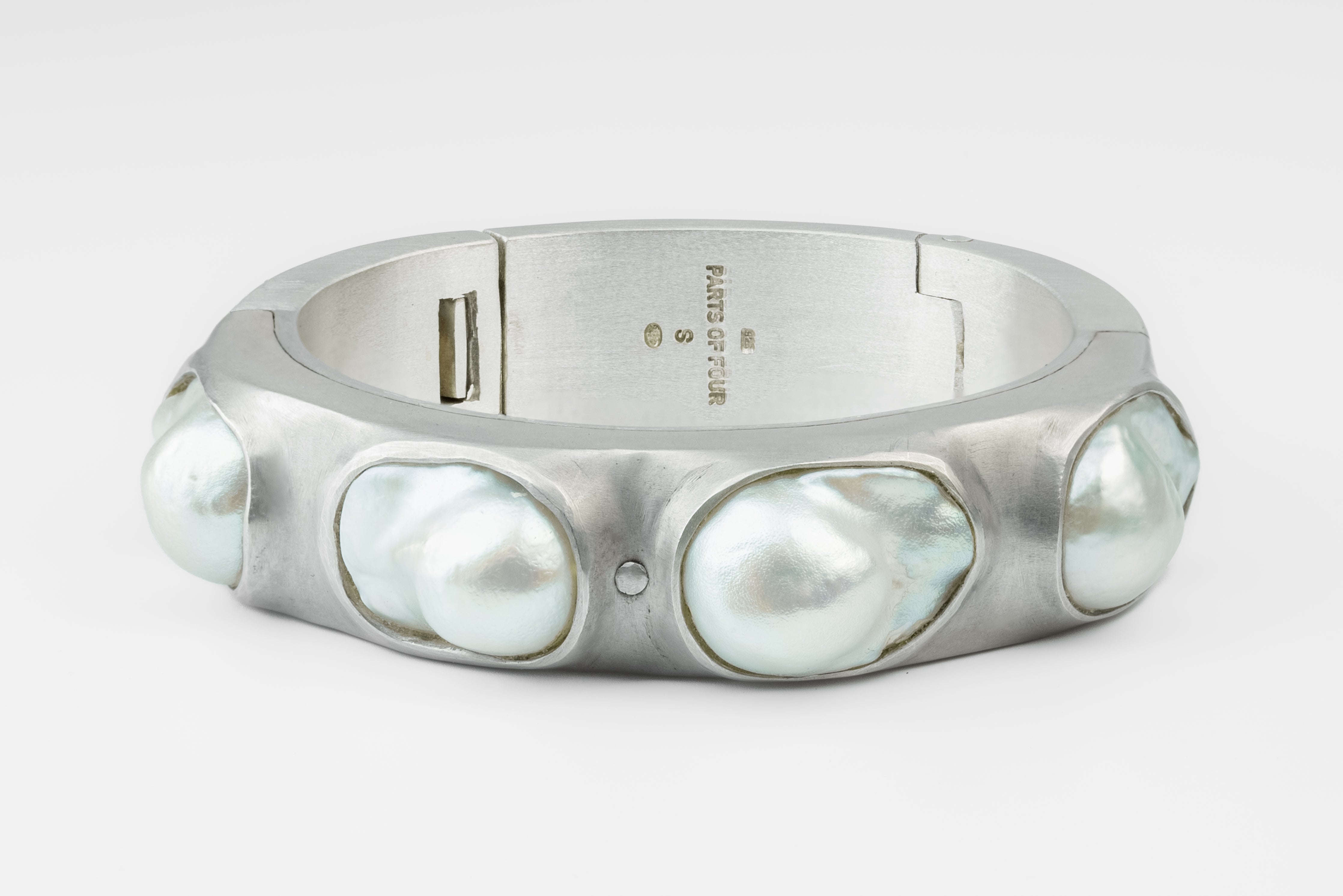 Colors: MA: Matte Sterling Silver. Sanded at 320 grit DA: Dirty Sterling. Sterling silver, dipped in acid to create a subdued surface. Results will never be identical, and this nuance / variation should be seen as a characteristic of the uniqueness of the product. WPRL: White Pearl. Baroque tear-dropped saltwater pearls. These are wild and natural bead specimens.