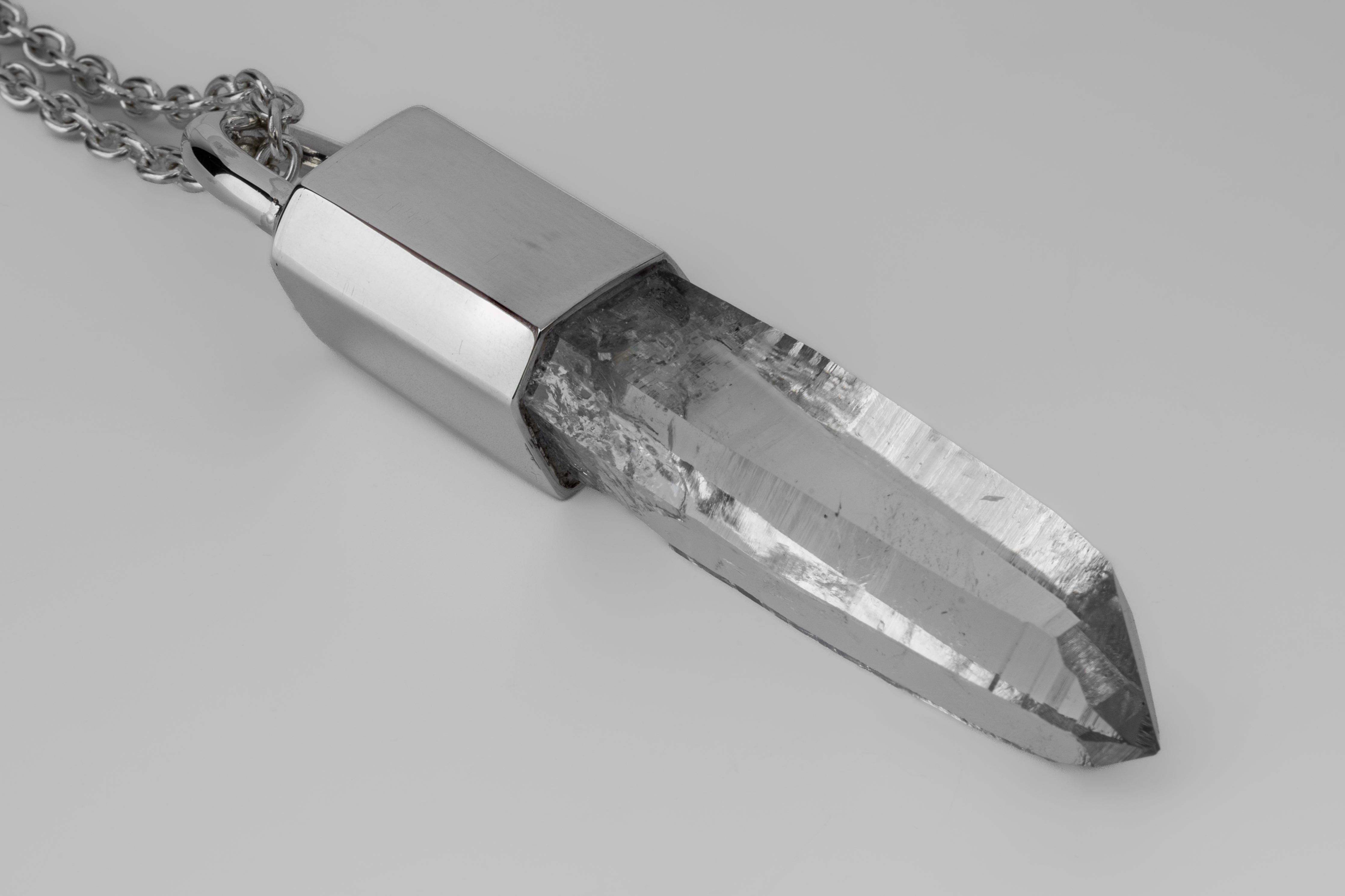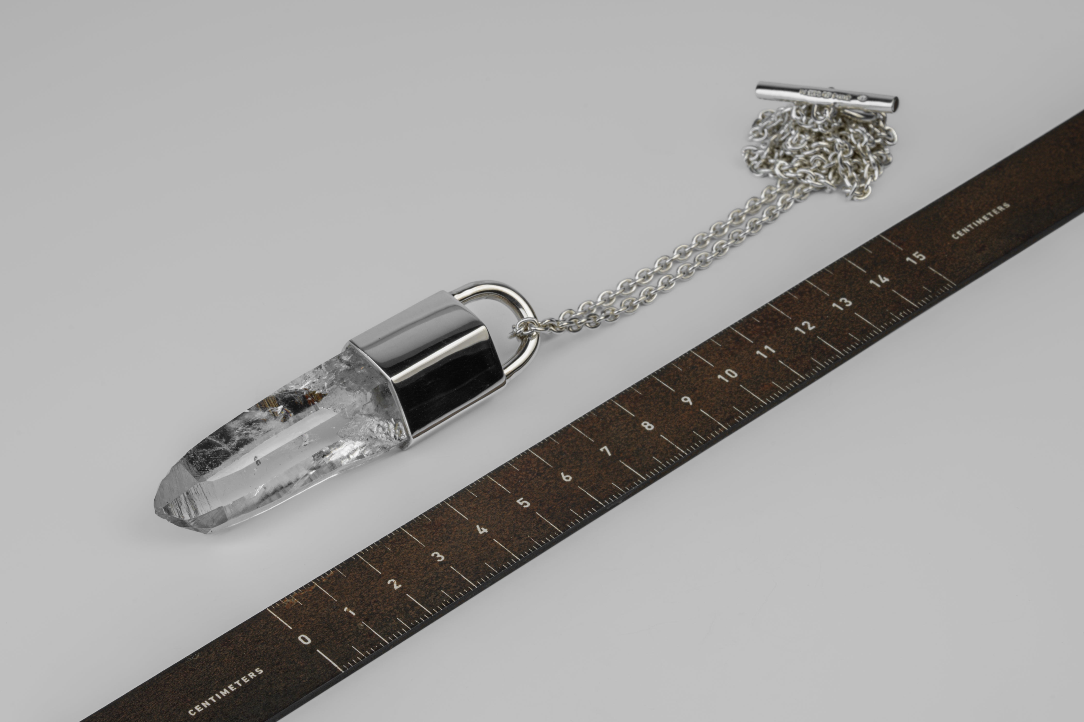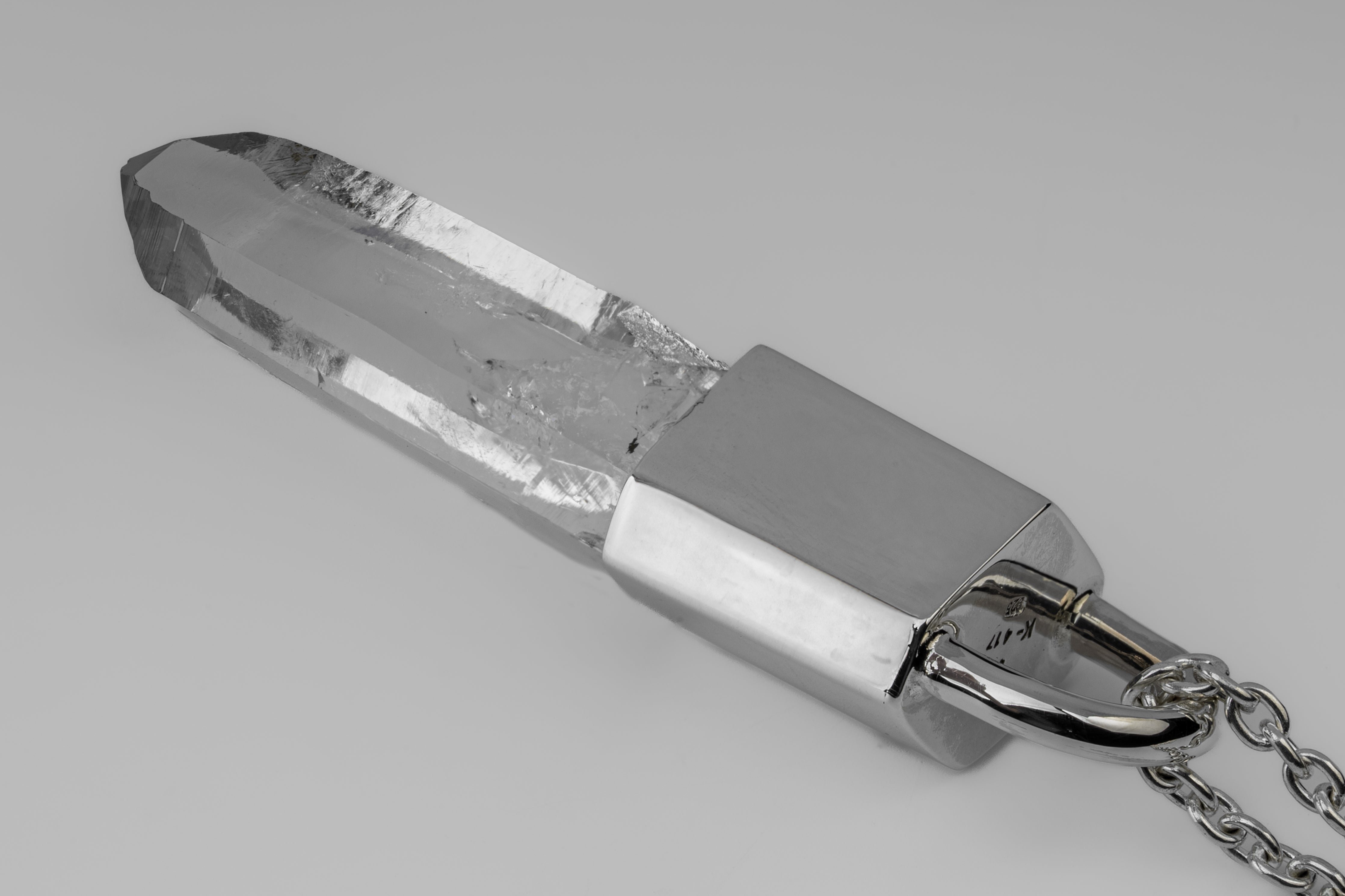 | Colors: | PA: Polished sterling silver. LEM: Lemurian Quartz. Locality: Peñas Blancas Mine, Boyaca, Colombia |
