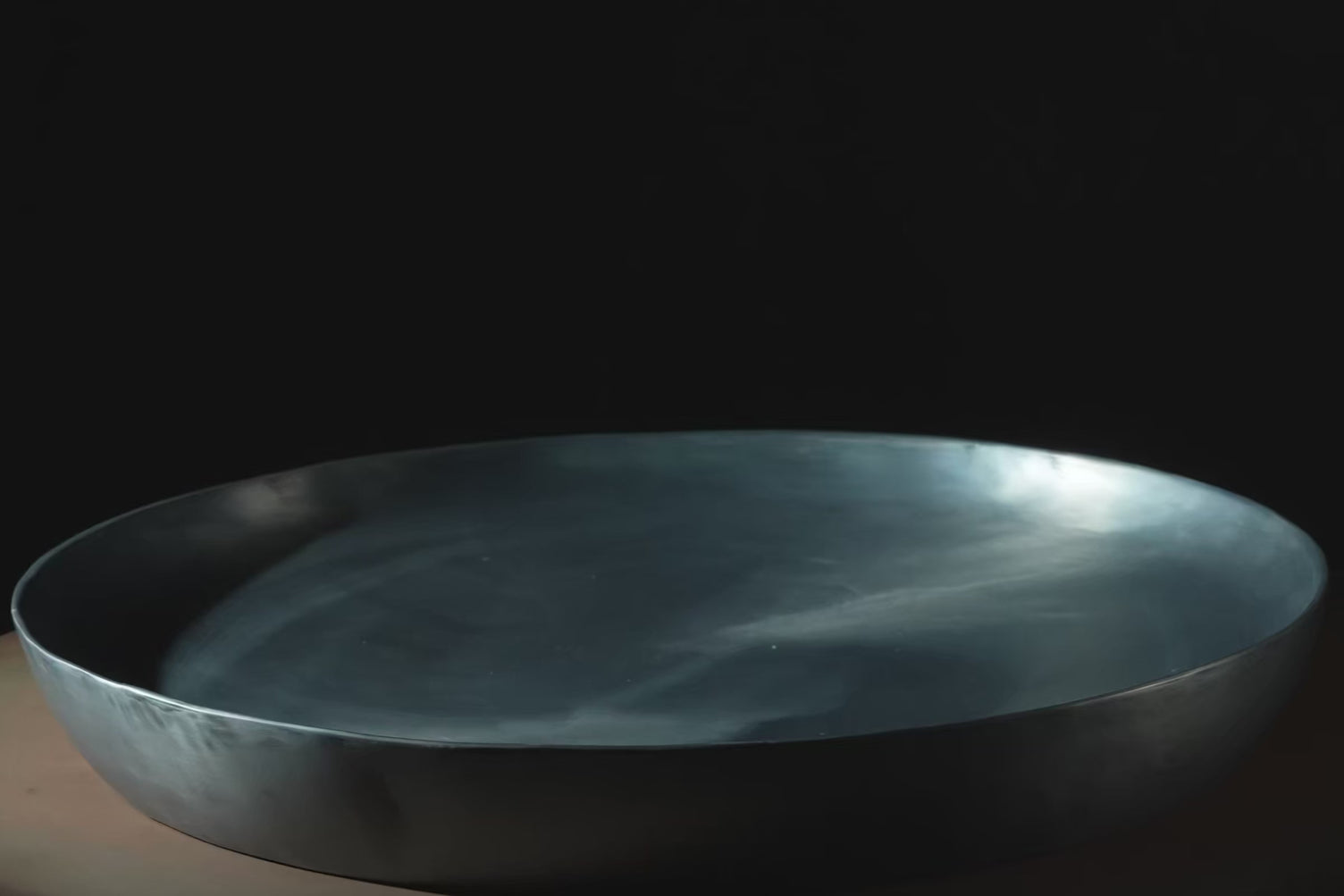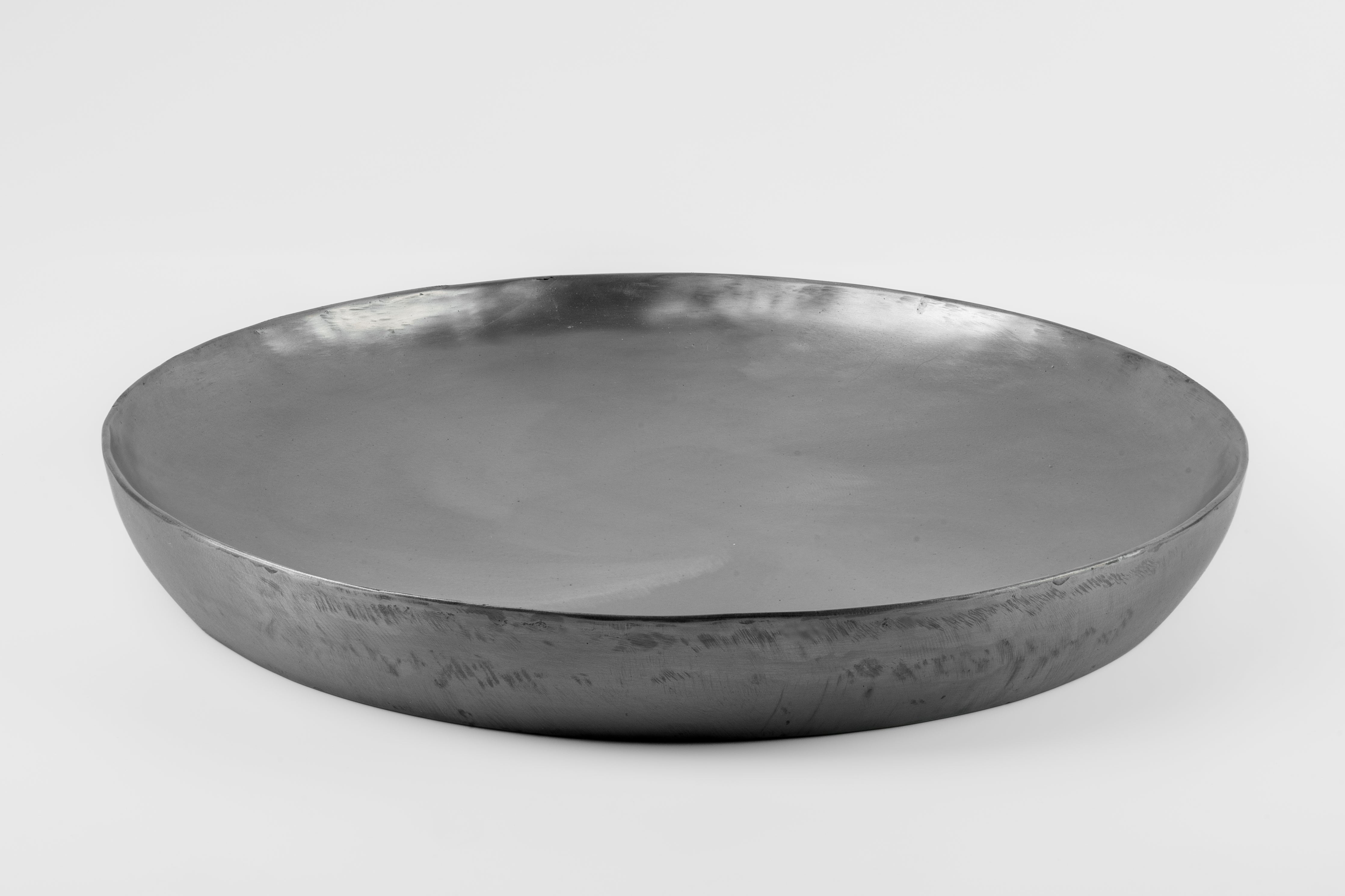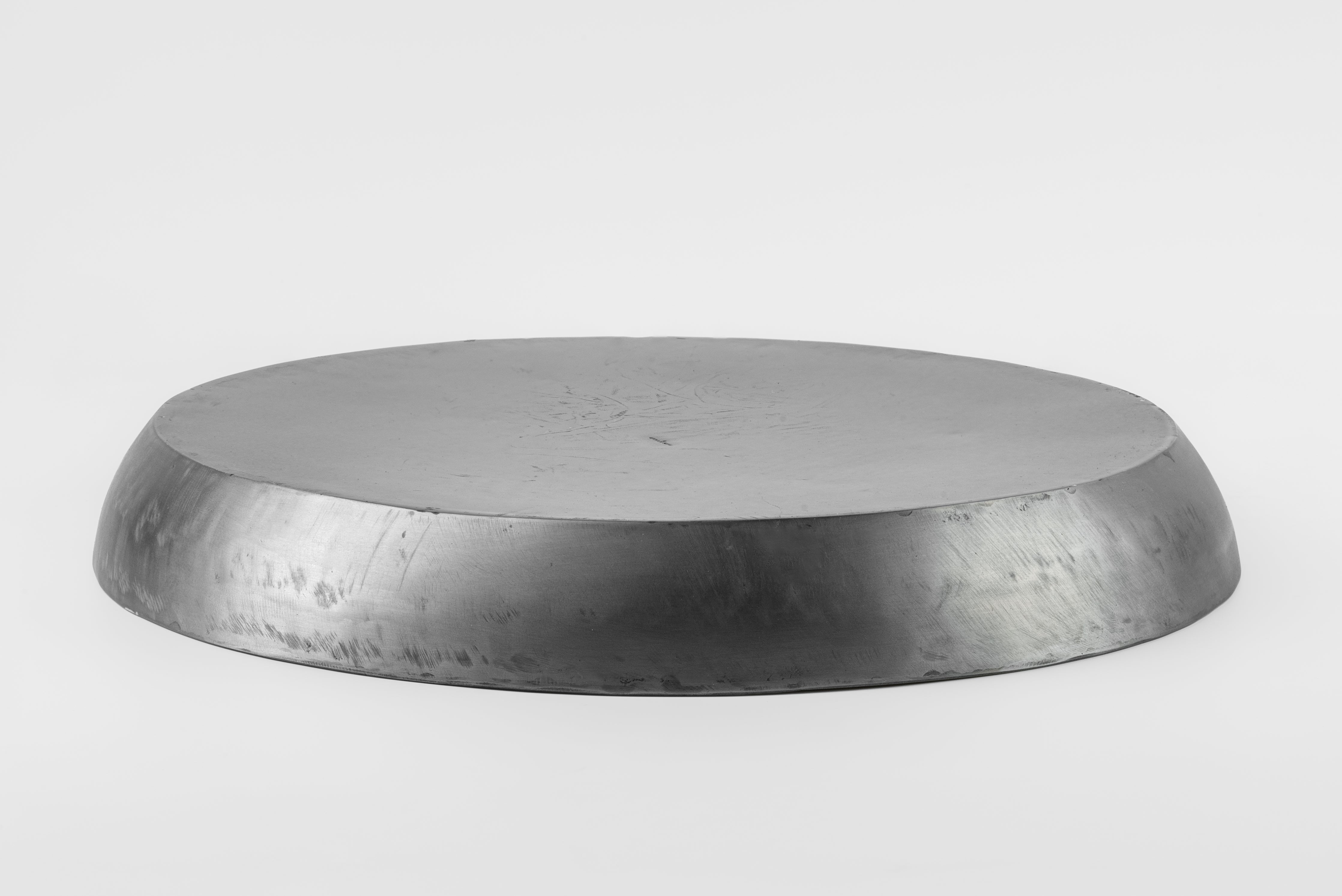 This piece is 100% hand fabricated from metal plate; cut into sections and soldered together to make the hollow three dimensional form. If sterling silver, the sheet metal is made by hand. The silver is melted and rolled out into plate.