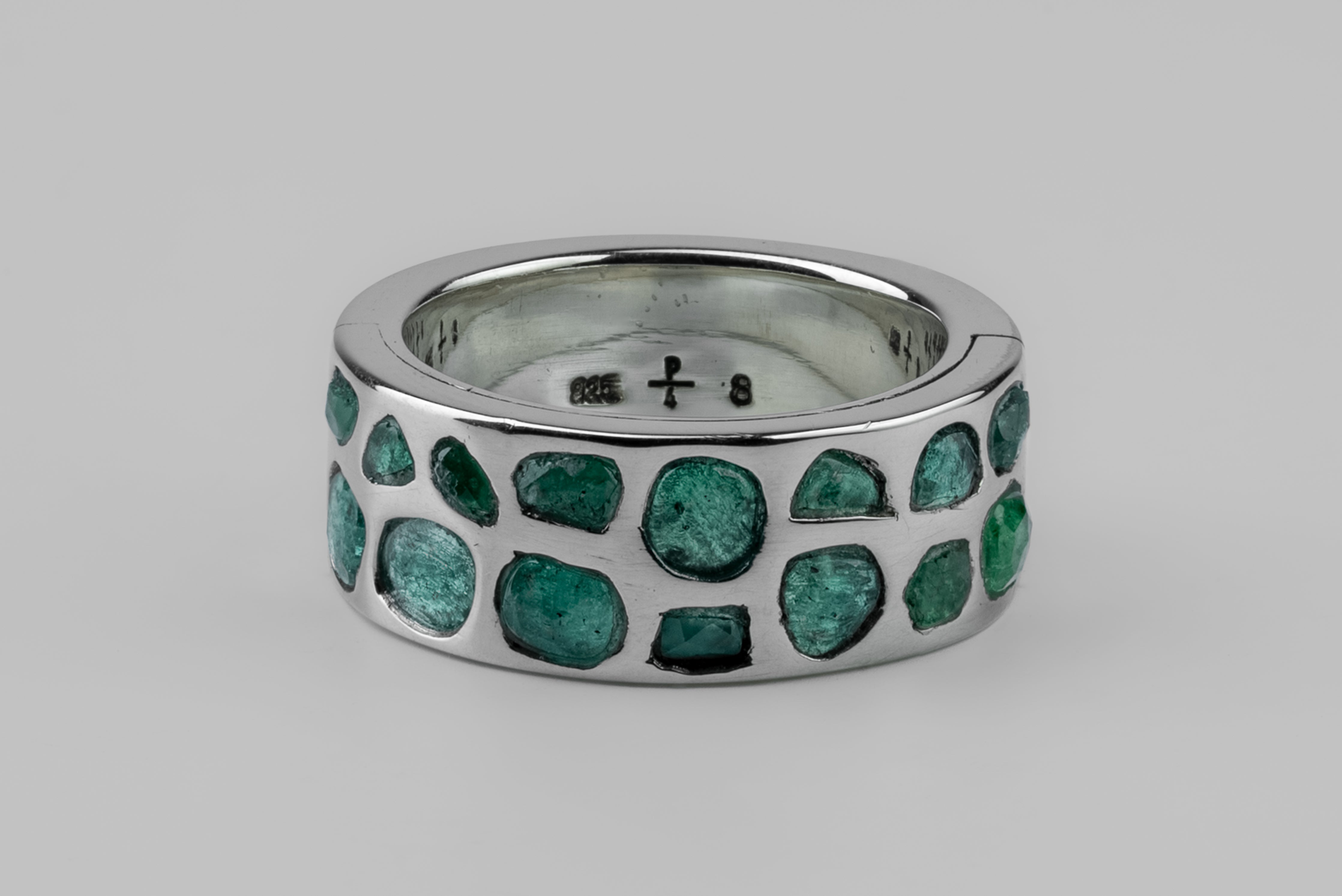 | Colors: | PA: Polished sterling silver. EMER: Emerald. Panjshir Valley, Afghanistan |
