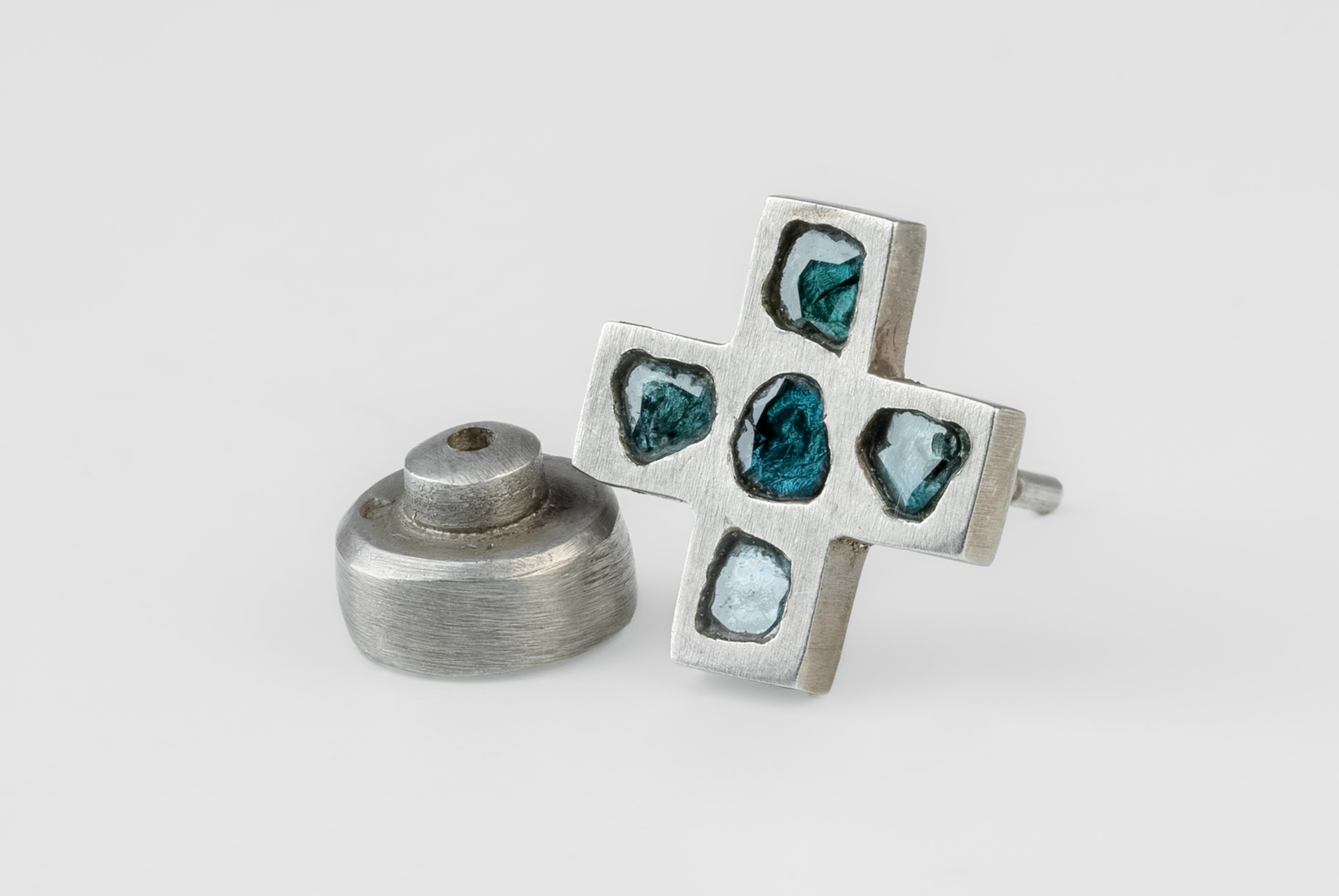 Plus Earring (Mega Pavé, Blue Diamond Slabs, 12mm, DA+BDIA)