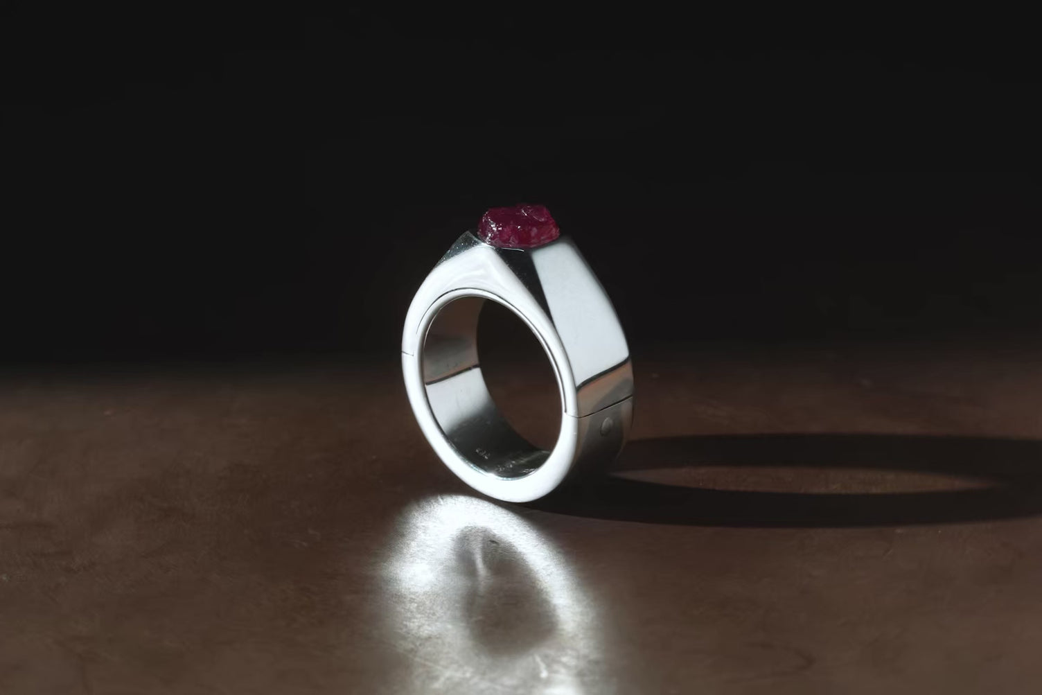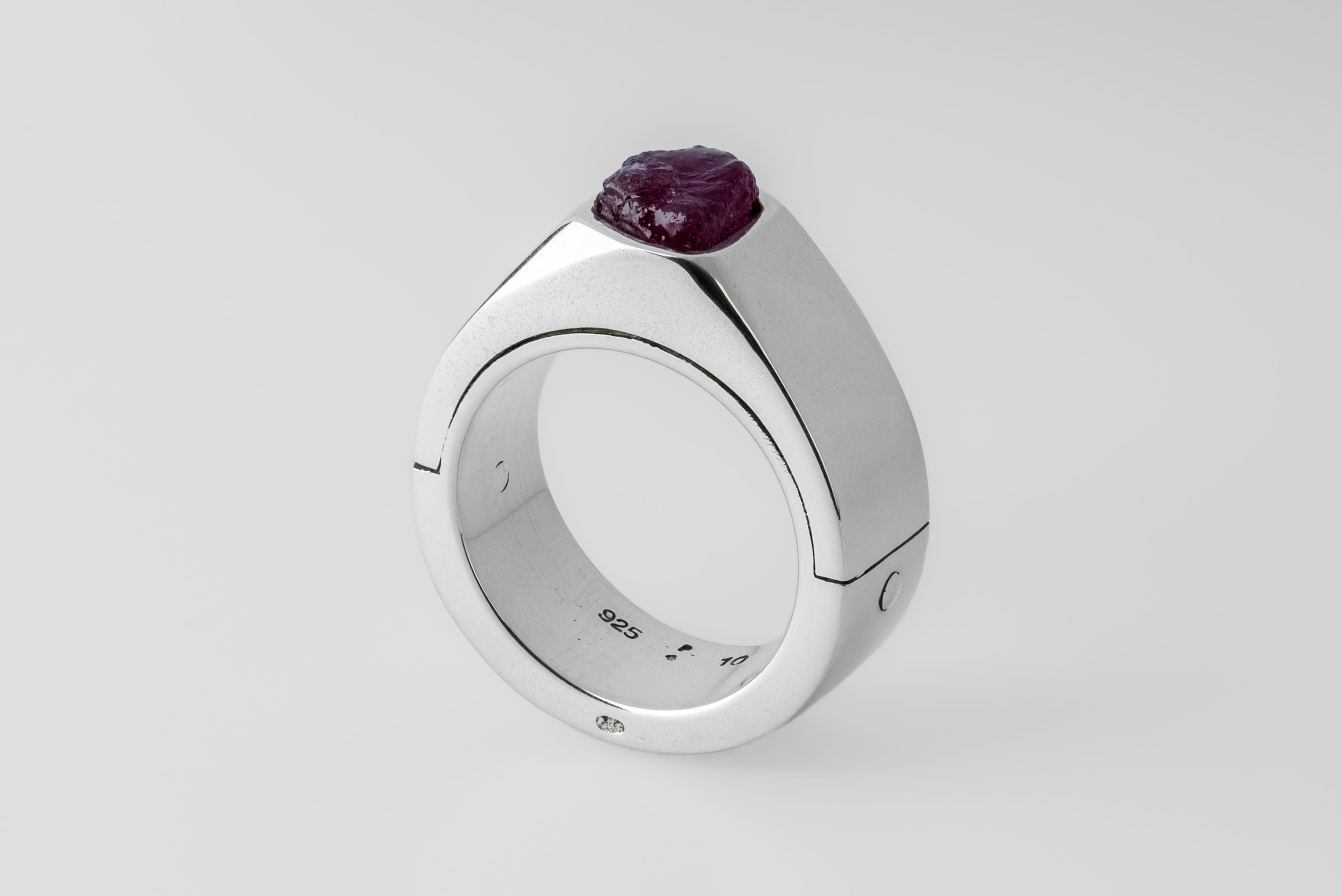 | Colors: | PA: Polished sterling silver. DRUS: Dirty Ruby Slabs. Slabs of rough harvested ruby, excavation quality. Un-polished. |