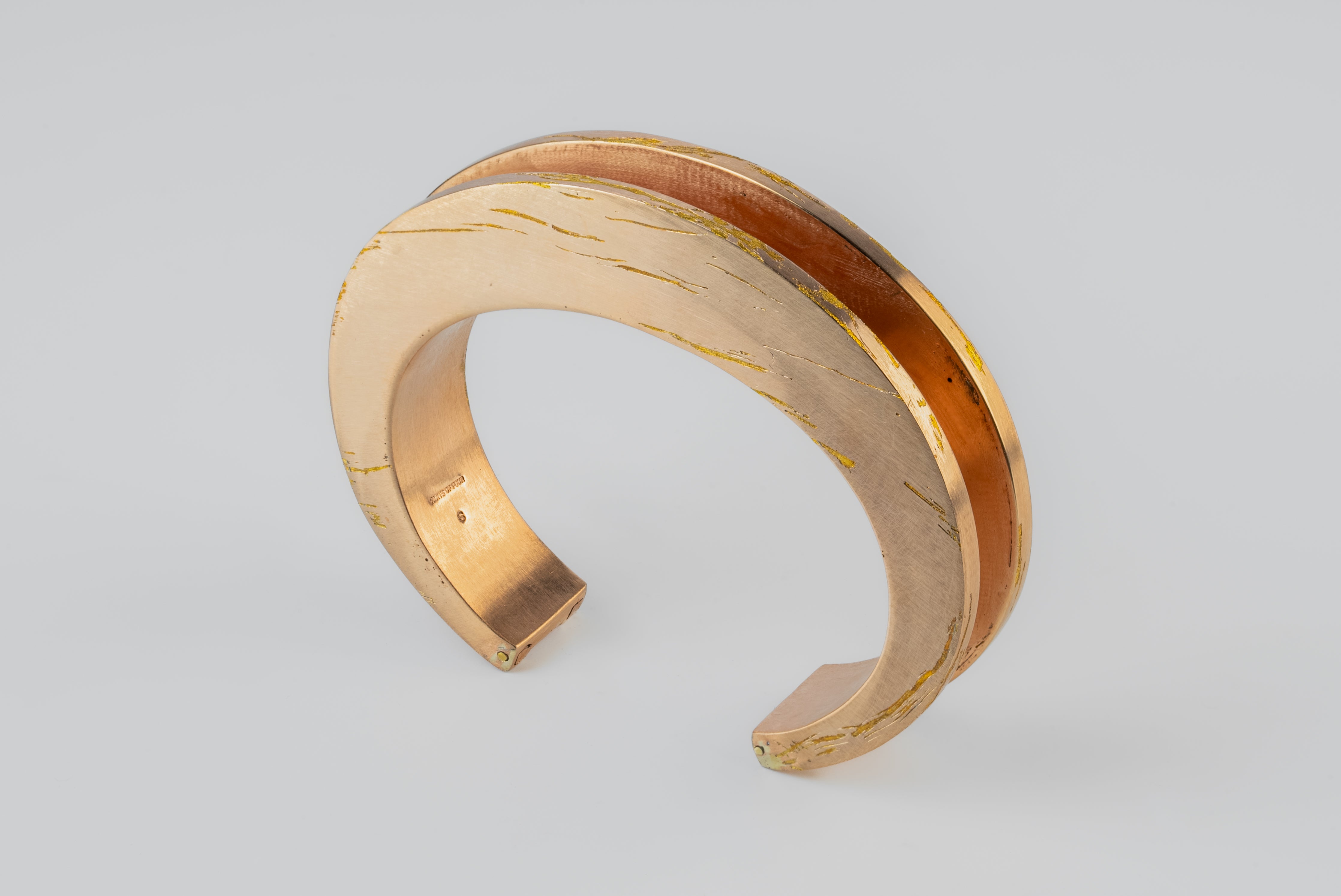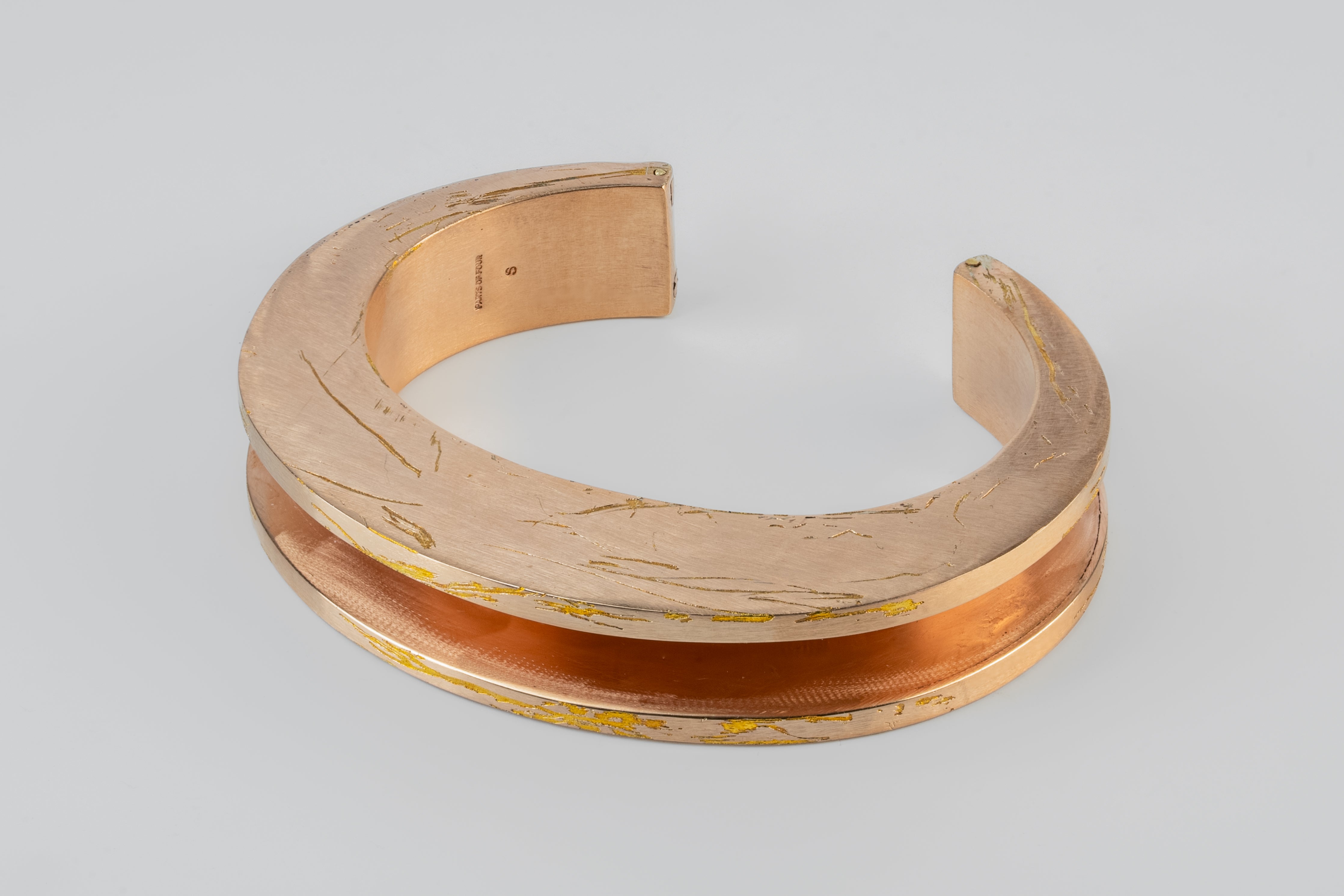 Colors: AM: Acid Rose. Brass substrate is electroplated with 18k Rose Gold and then dipped into acid to create the subtly destroyed surface. The concentration of the plating solution, air temperature and time in the acid bath all play integral roles in the final result and exist in a delicate balance. No two items are the same and these nuances / variations should be seen as a characteristic of the product.