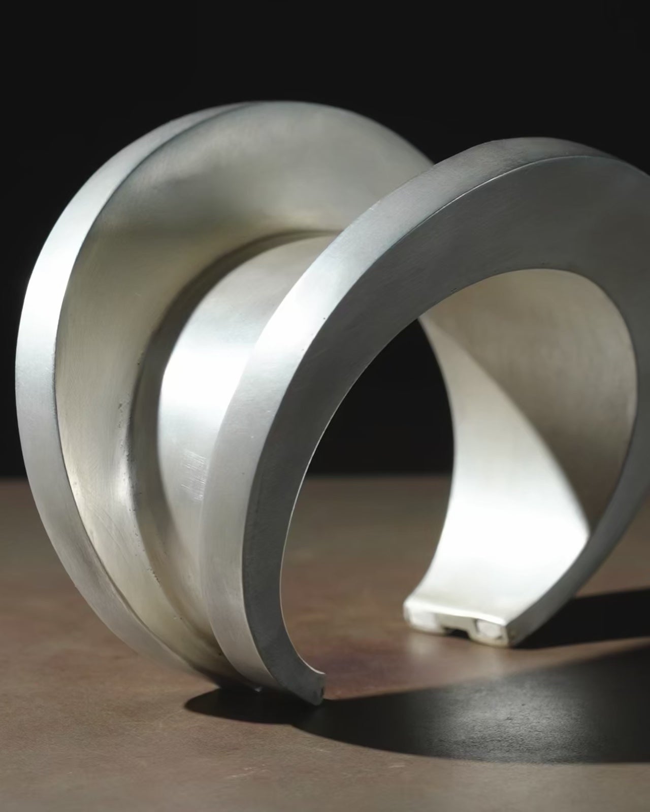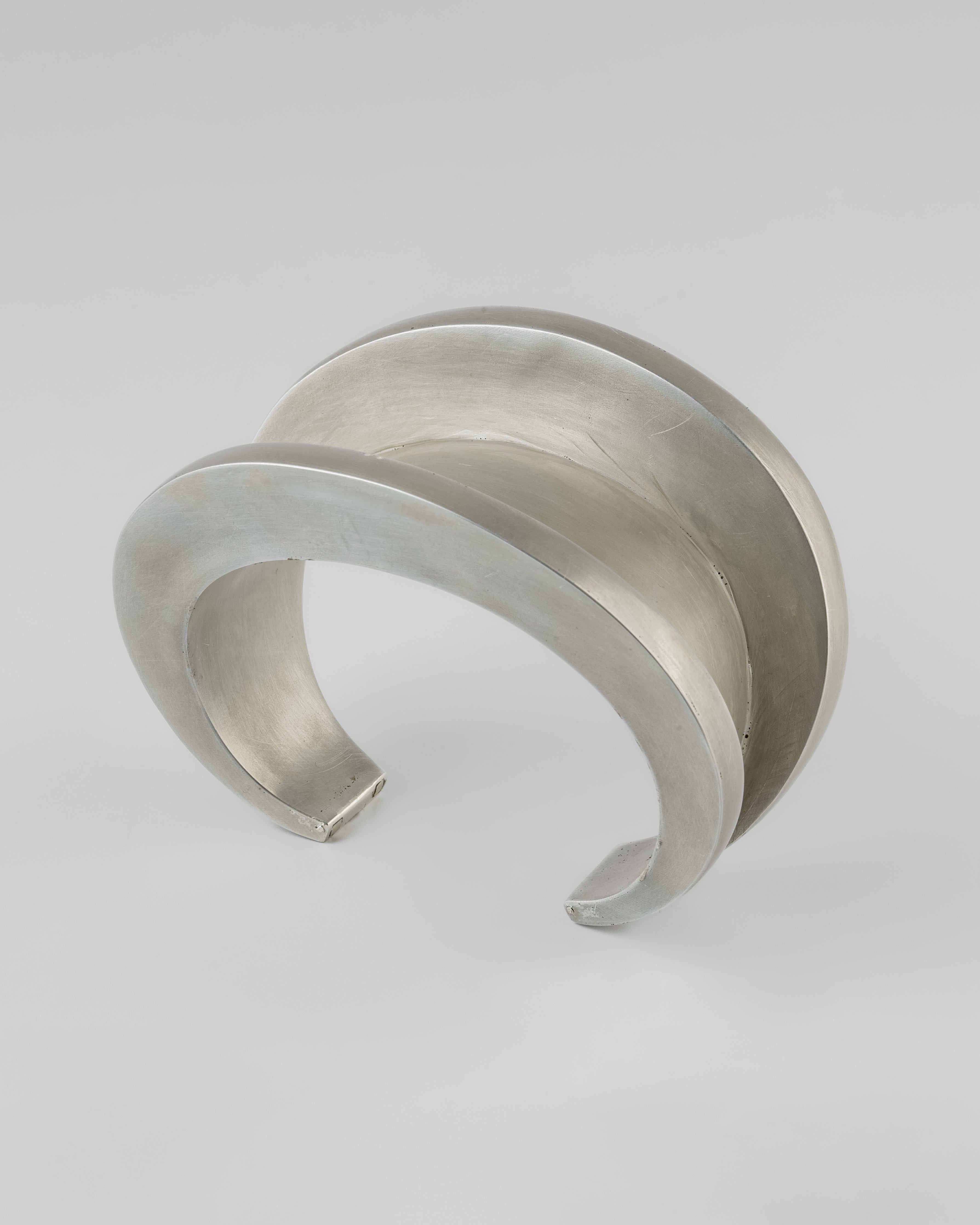 This piece is 100% hand fabricated from metal plate; cut into sections and soldered together to make the hollow three dimensional form. If sterling silver, the sheet metal is made by hand. The silver is melted and rolled out into plate.