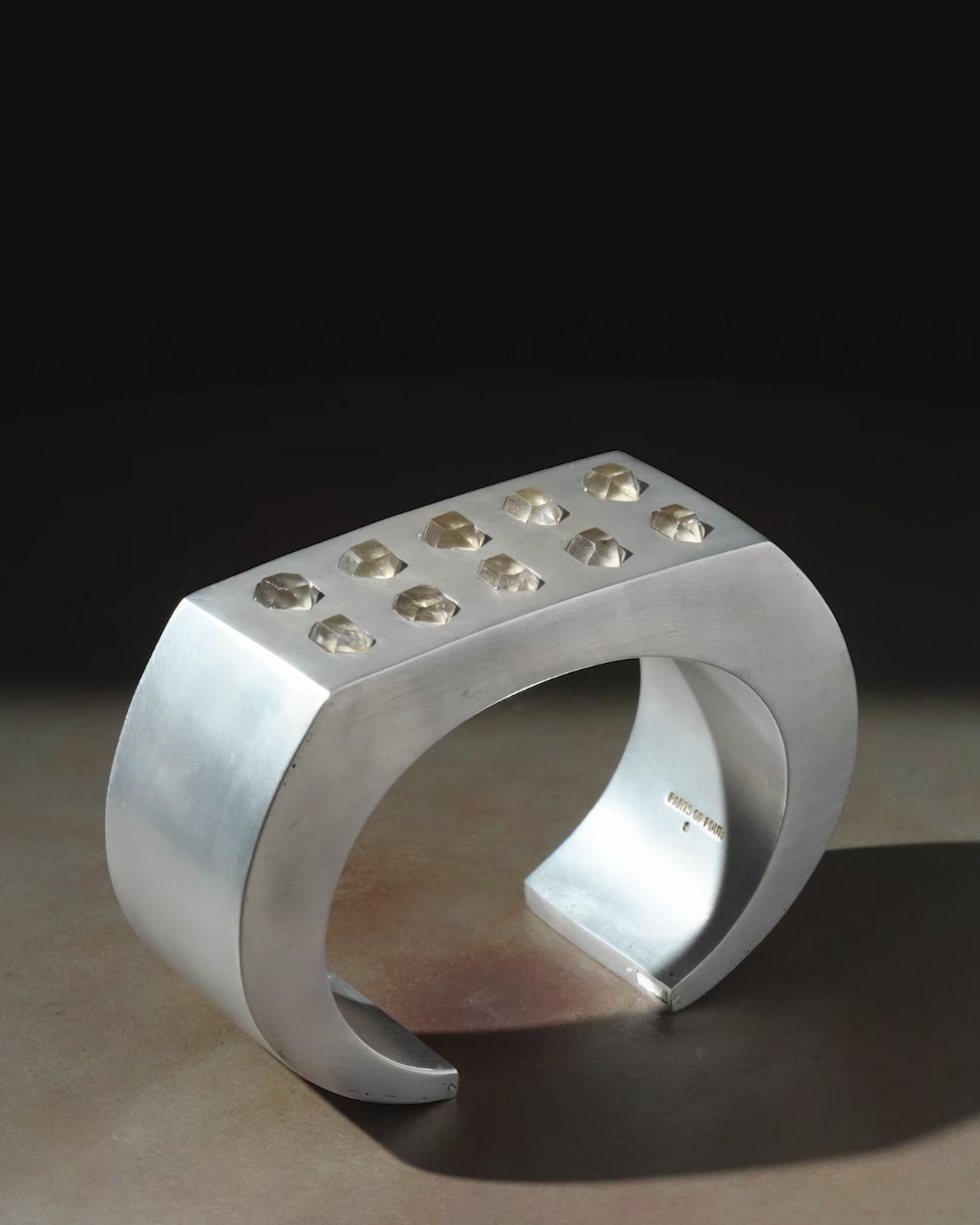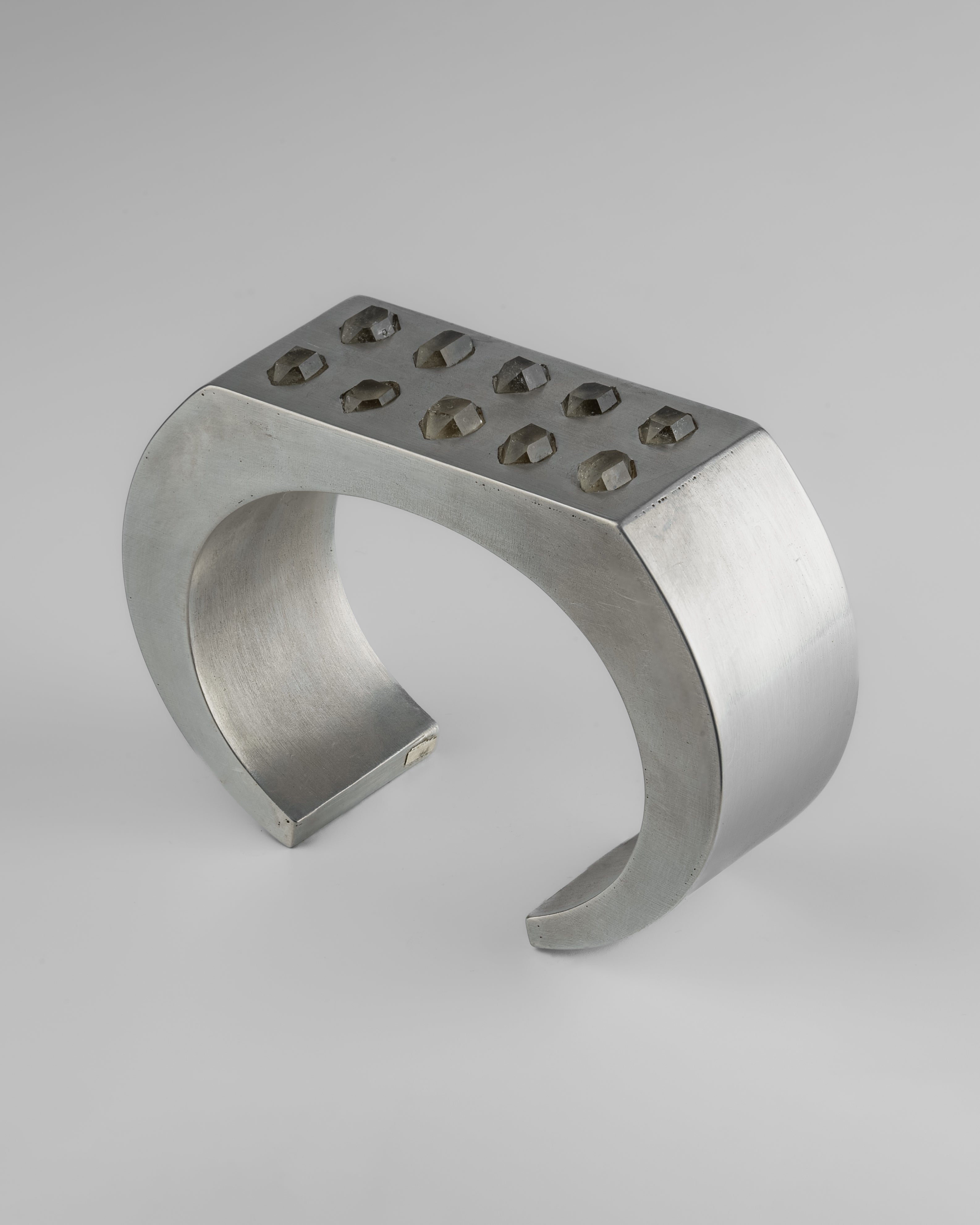 | Colors: | AS: Acid Silver. Brass substrate is electroplated with silver and then dipped into acid to create the subtly destroyed surface. The concentration of the plating solution, air temperature and time in the acid bath all play integral roles in the final result and exist in a delicate balance. No two items are the same and these nuances / variations should be seen as a characteristic of the product. HER: Herkimer diamond. Double-terminated quartz crystals, super clarity (water-clear) discovered within exposed outcrops of dolostone in and around Herkimer County, New York and the Mohawk River Valley [Anu-ra-el] |