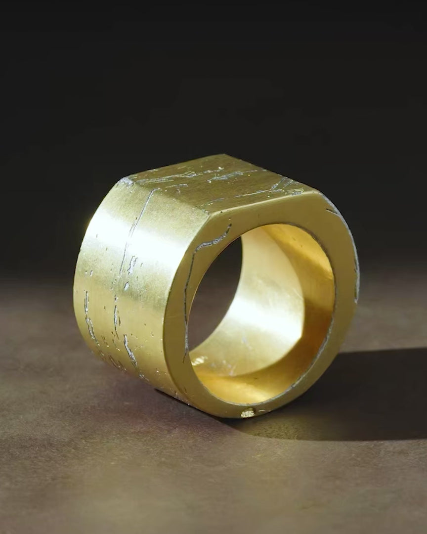 | Colors: | AGA: Sterling Acid Gold. Sterling silver substrate is electroplated with 18k Gold and then dipped into acid to create the subtly destroyed surface. The concentration of the plating solution, air temperature and time in the acid bath all play integral roles in the final result and exist in a delicate balance. No two items are the same and these nuances / variations should be seen as a characteristic of the product. |