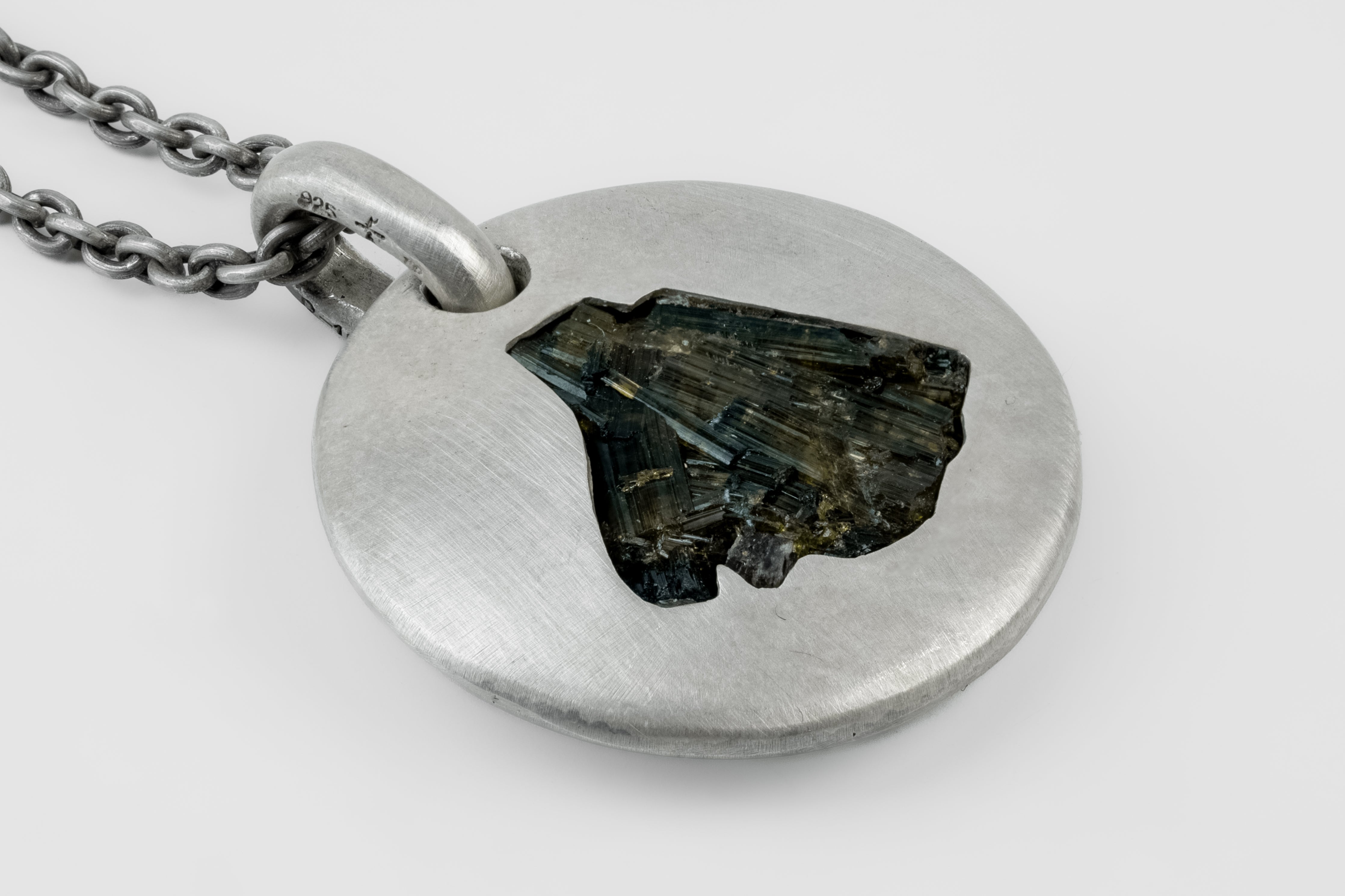 | Colors: | DA: Dirty Sterling. Sterling silver, dipped in acid to create a subdued surface. Results will never be identical, and this nuance / variation should be seen as a characteristic of the uniqueness of the product. VER: Verdelite. Tourmaline: Green |