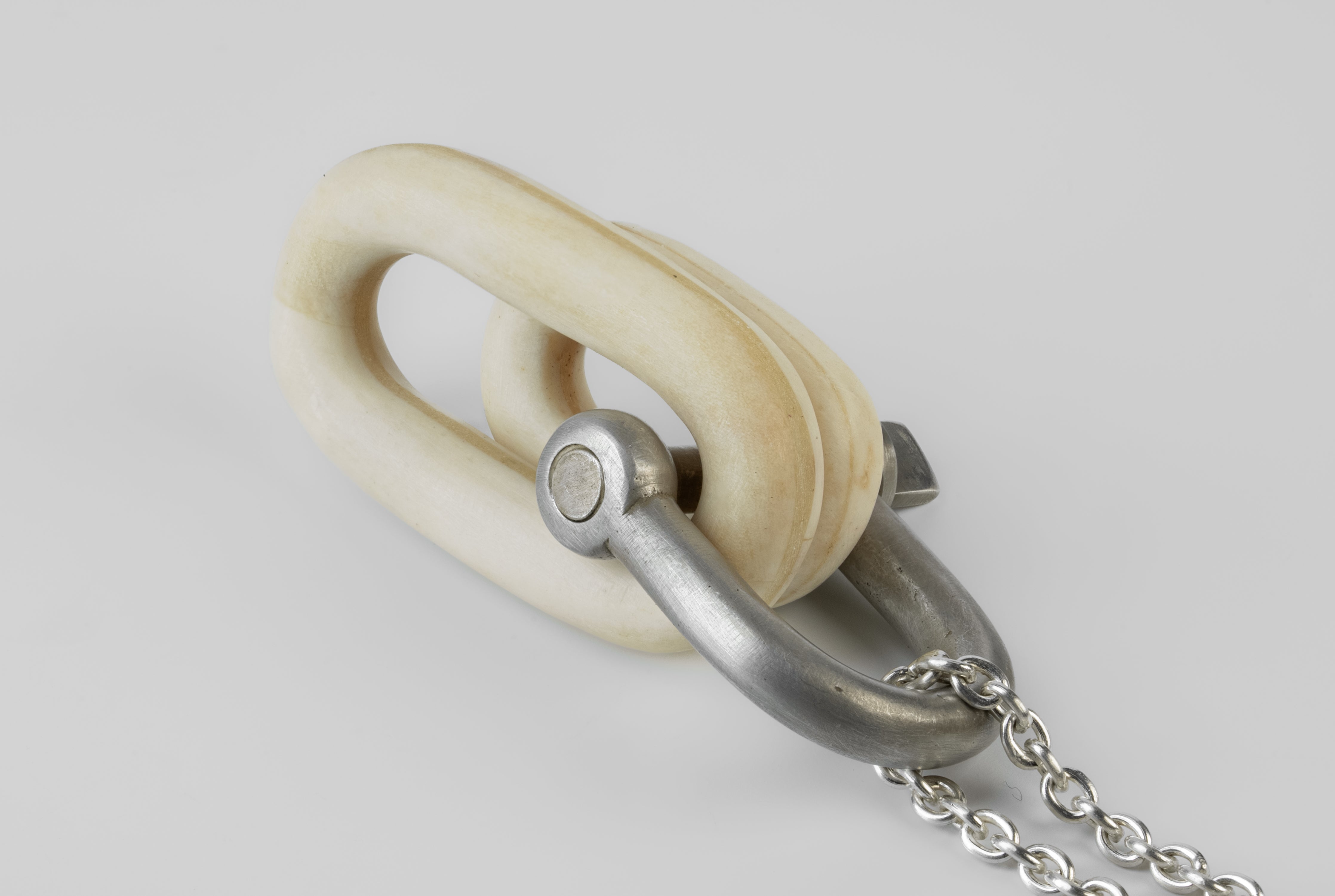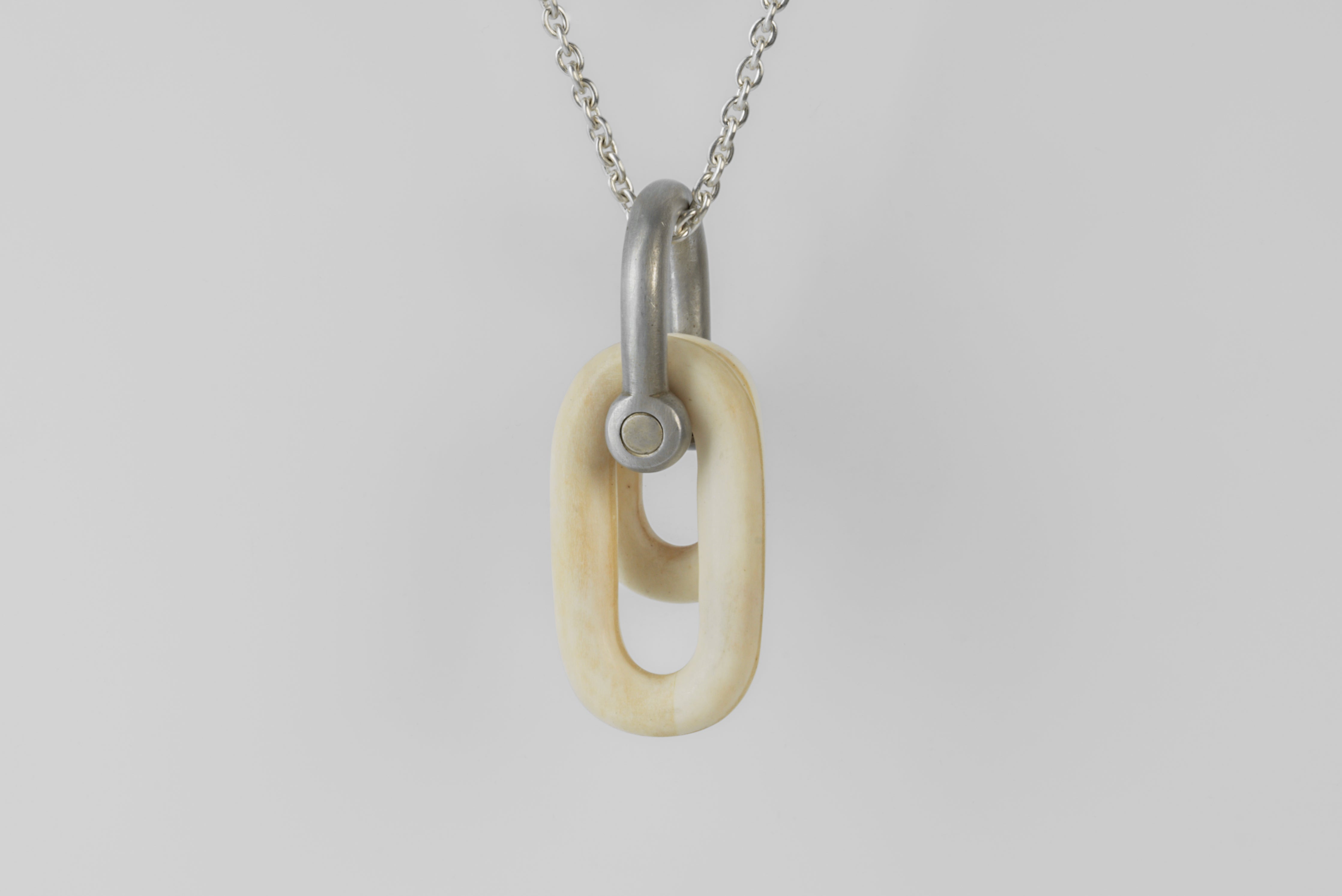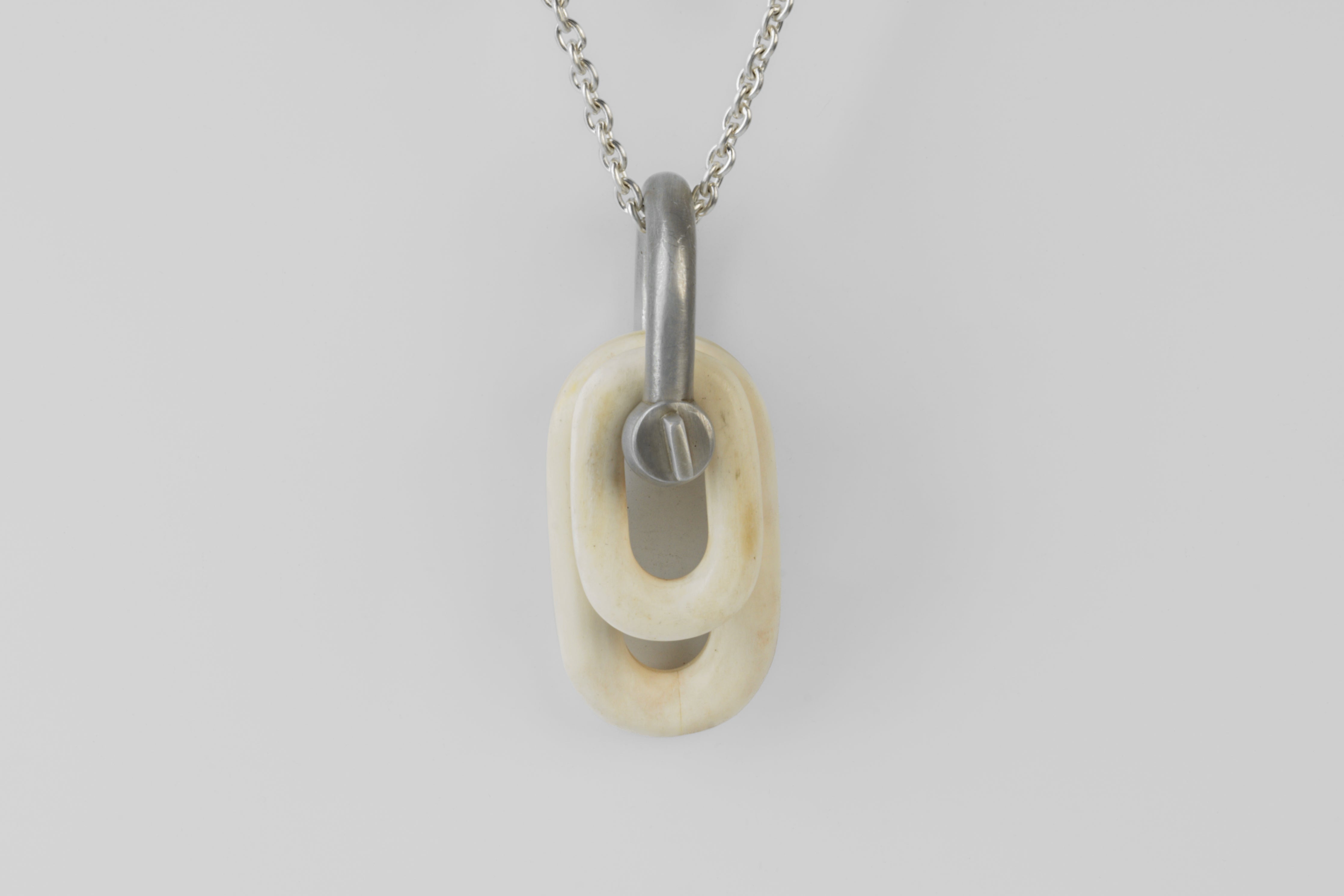 | Colors: | MB: Matte Bone. Water buffalo (Bubalus bubalis). The bone form is completely hand carved. AS: Acid Silver. Brass substrate is electroplated with silver and then dipped into acid to create the subtly destroyed surface. The concentration of the plating solution, air temperature and time in the acid bath all play integral roles in the final result and exist in a delicate balance. No two items are the same and these nuances / variations should be seen as a characteristic of the product. MA: Matte Sterling Silver. Sanded at 320 grit |