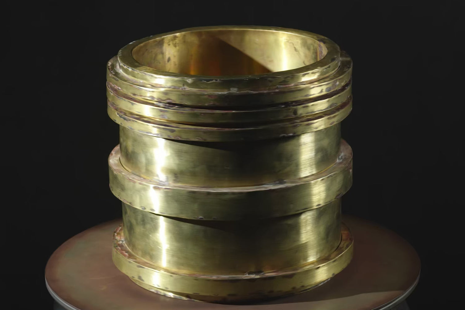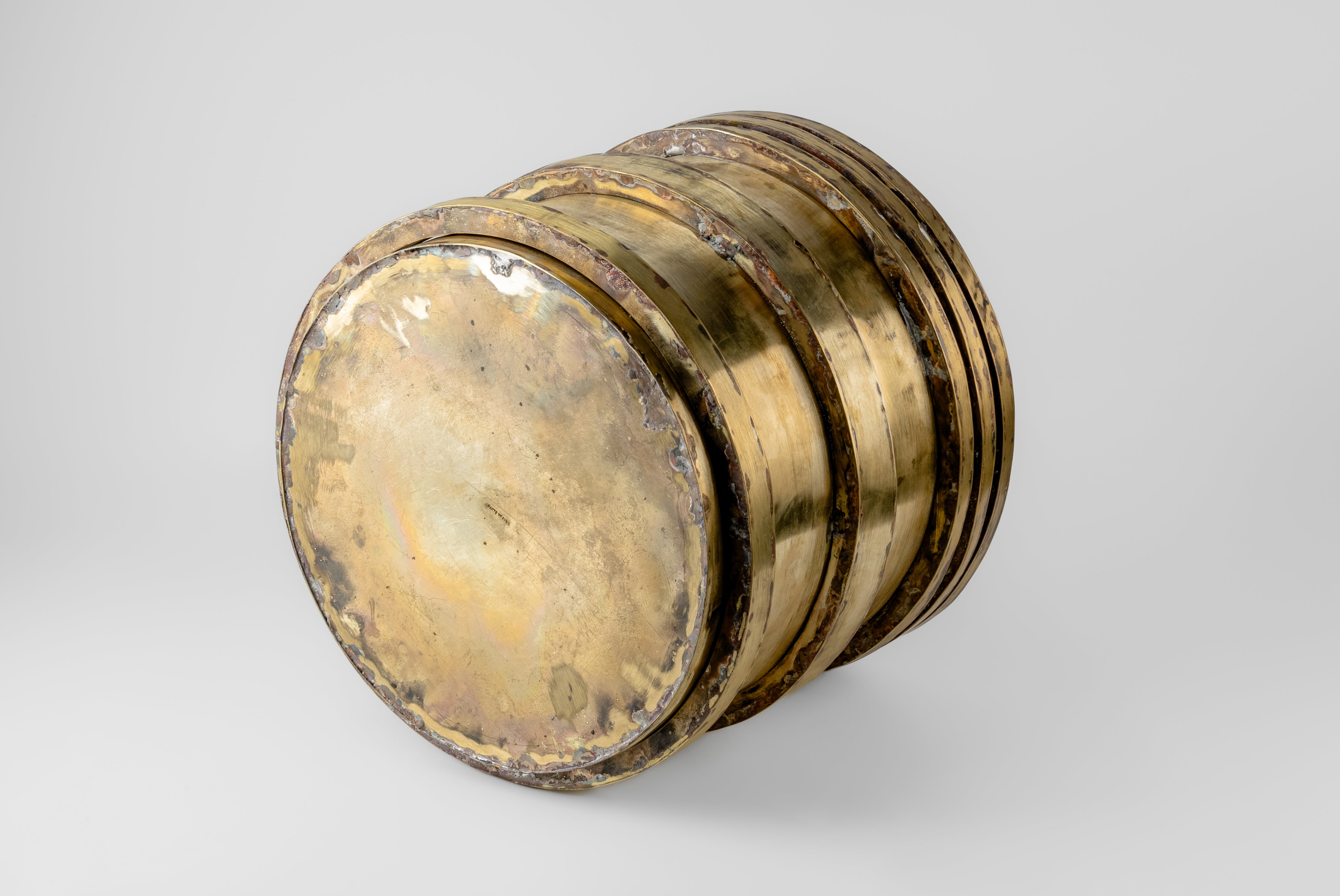 This piece is 100% hand fabricated from metal plate; cut into sections and soldered together to make the hollow three dimensional form. If sterling silver, the sheet metal is made by hand. The silver is melted and rolled out into plate.