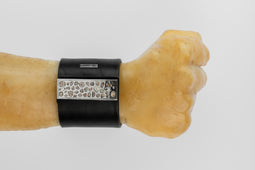 | Colors: | BLK: Black Buffalo leather. PA: Polished sterling silver. DIA: Rough Diamond. The stones used in this item are cuts of diamond material that are removed from a larger chunk of diamond as they are attempting to get to the perfect diamond in the center. Each stone fragment and shape are absolutely unique. |