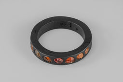 | Colors: | KA: Black Sterling. Black Sterling is a surface oxidation of sterling silver. This finish may fade over time, which can be considered an enhancement. Please note that Black Sterling tends to appear darker in photograph than in person. The finish can be re-blackened easily with Liver of Sulfur, available at most jewelry suppliers. OSAF: Orange Sapphire Slab (Faceted). |