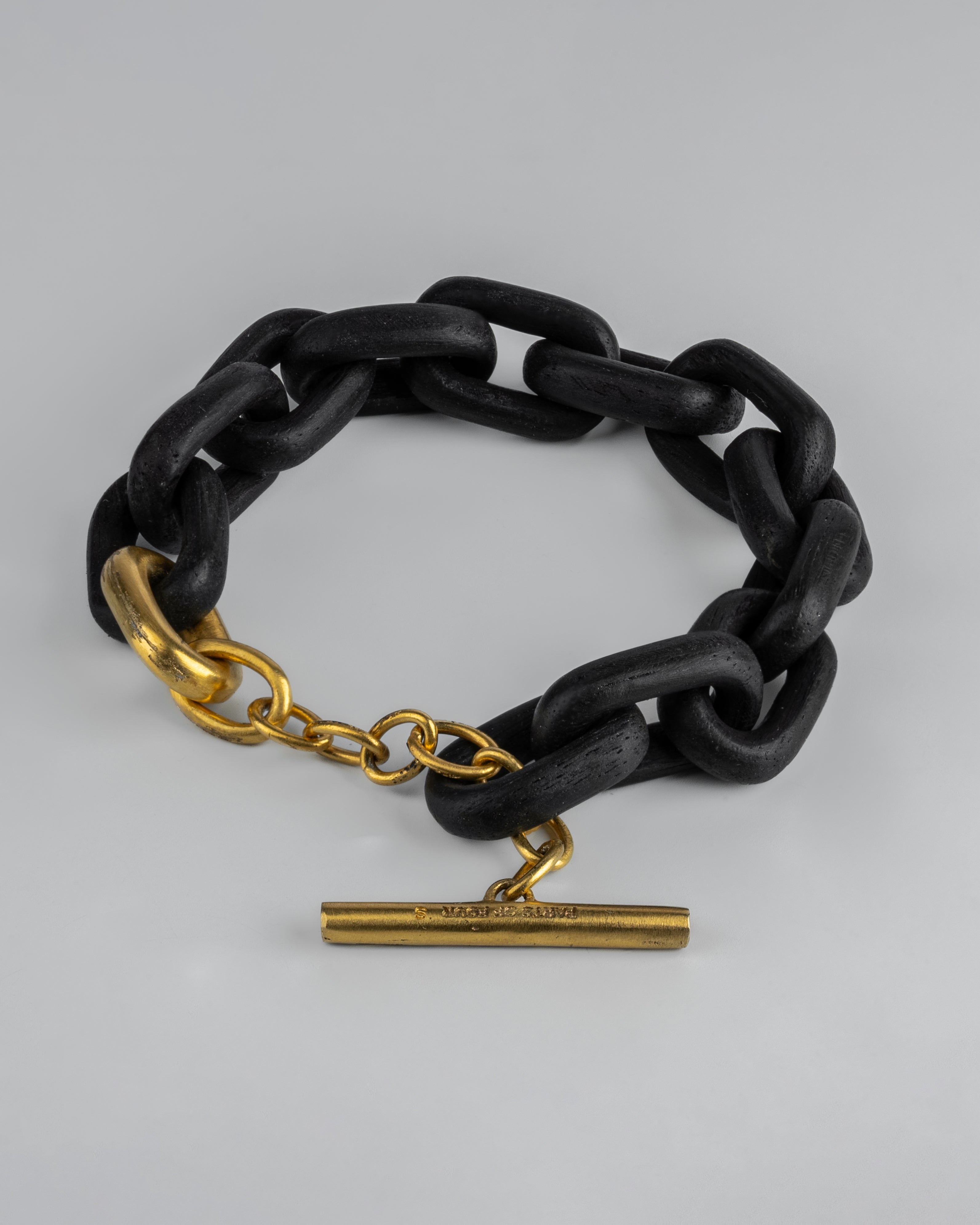 All organic chain is carved by hand. In the case of the chains made of wood, they are absolutely seamless; carved from a single long slab of wood (see link). Chains made from bone, horn and coral are modeled and constructed into chain links.
