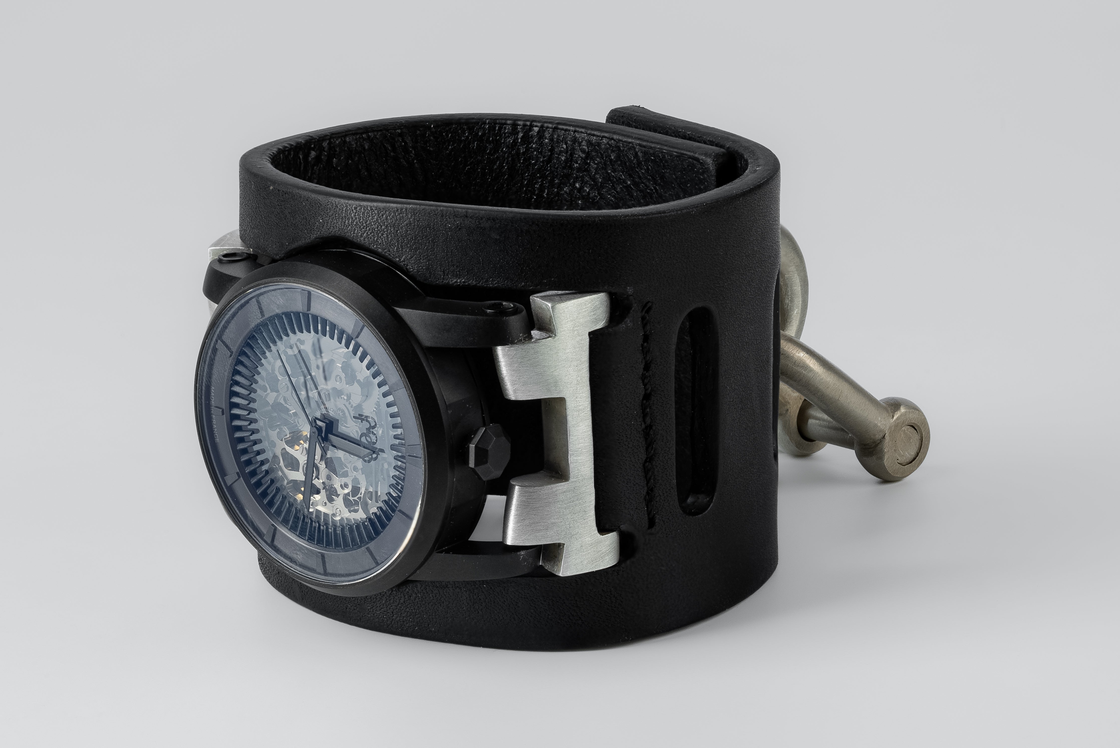 Colors: DA: Dirty Sterling. Sterling silver, dipped in acid to create a subdued surface. Results will never be identical, and this nuance / variation should be seen as a characteristic of the uniqueness of the product. NG: Nero Grappone Leather.