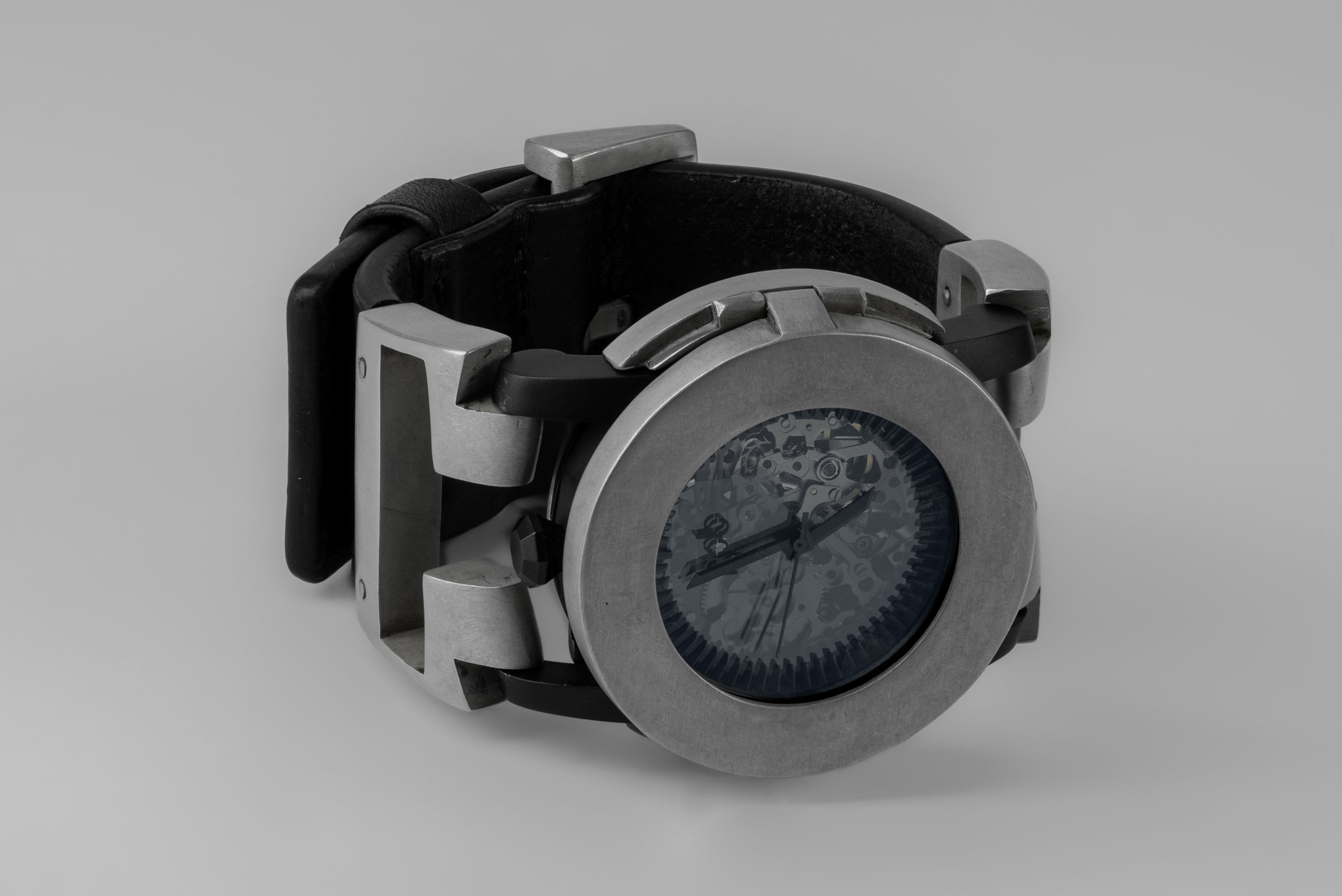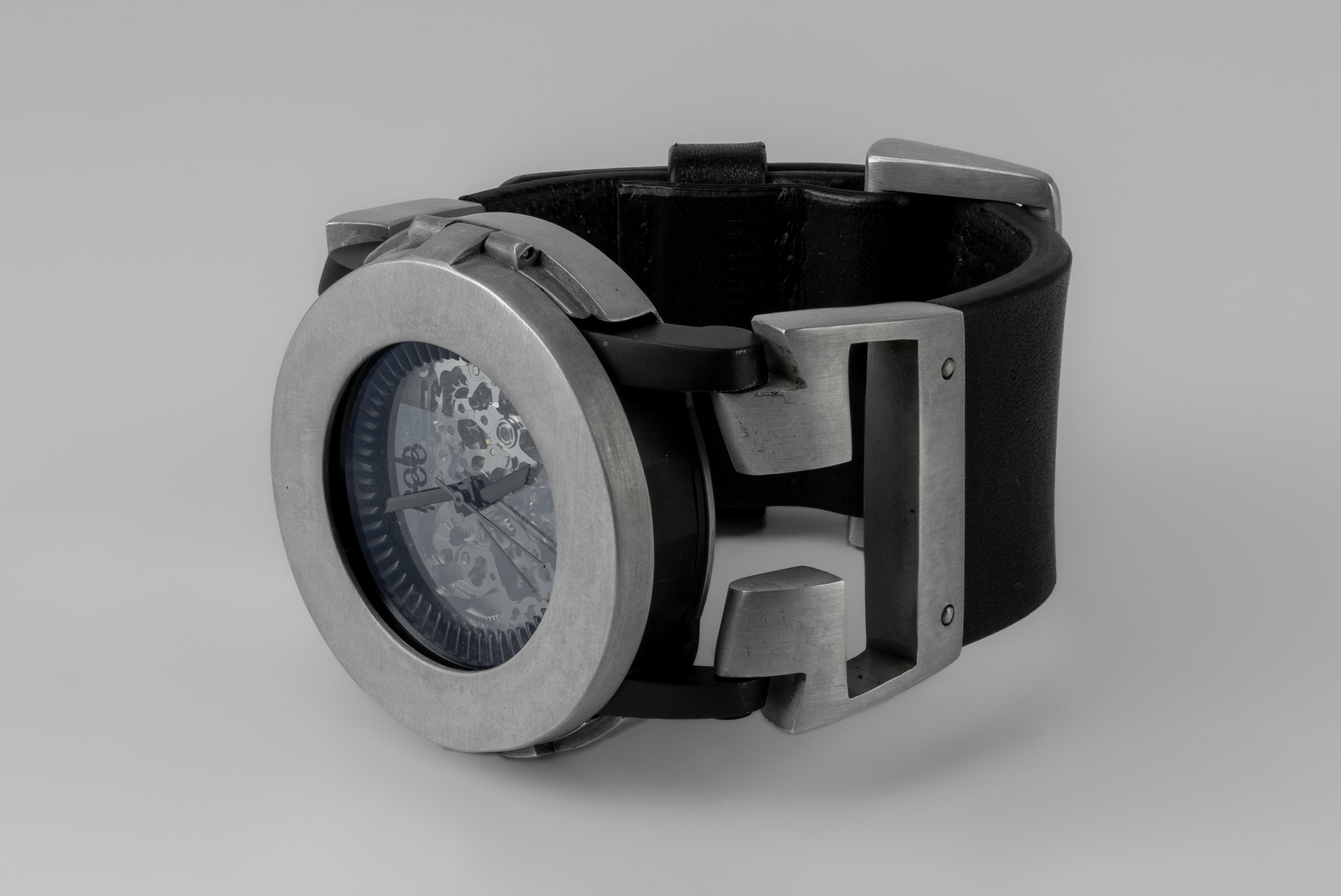 | Colors: | DA: Dirty Sterling. Sterling silver, dipped in acid to create a subdued surface. Results will never be identical, and this nuance / variation should be seen as a characteristic of the uniqueness of the product. NG: Nero Grappone Leather. |